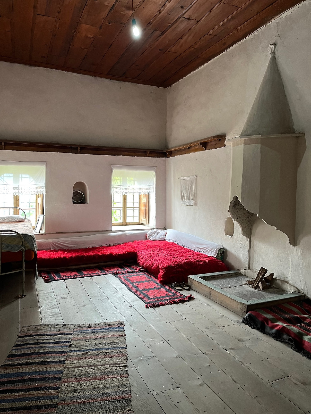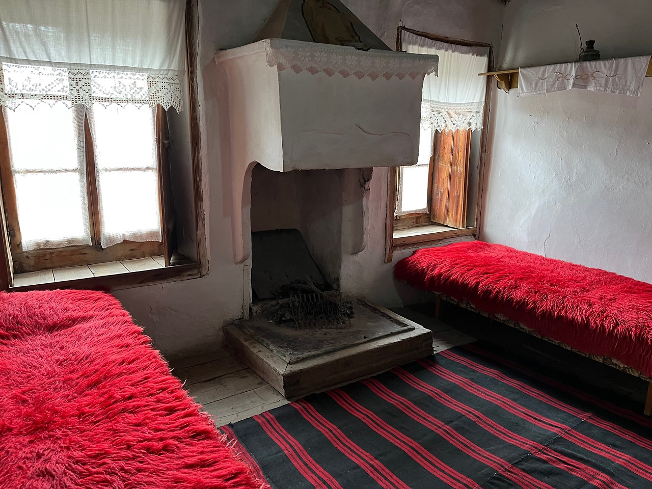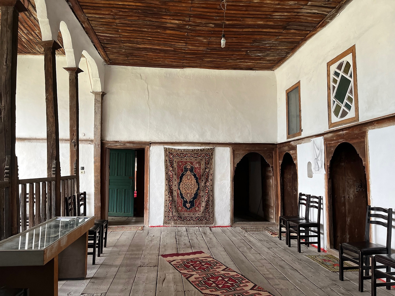 우리는 안으로 들어갔다. 관람객은 우리 둘 뿐. 조용해서 천천히 감상할 수 있어 좋았다. 일층과 이층은 겨울나기 위한 공간으로 널따란 입구와 함께 중앙에 커다란 실내 마당 같은 거실을 두었고 왼쪽 큰 방에는 각종 공구와 식량을 보관하는 광, 가운데 맞은편에 우물과 커다란 아궁이가 있다.