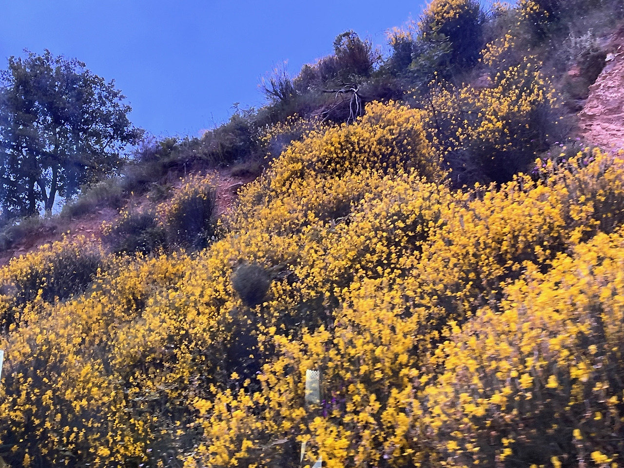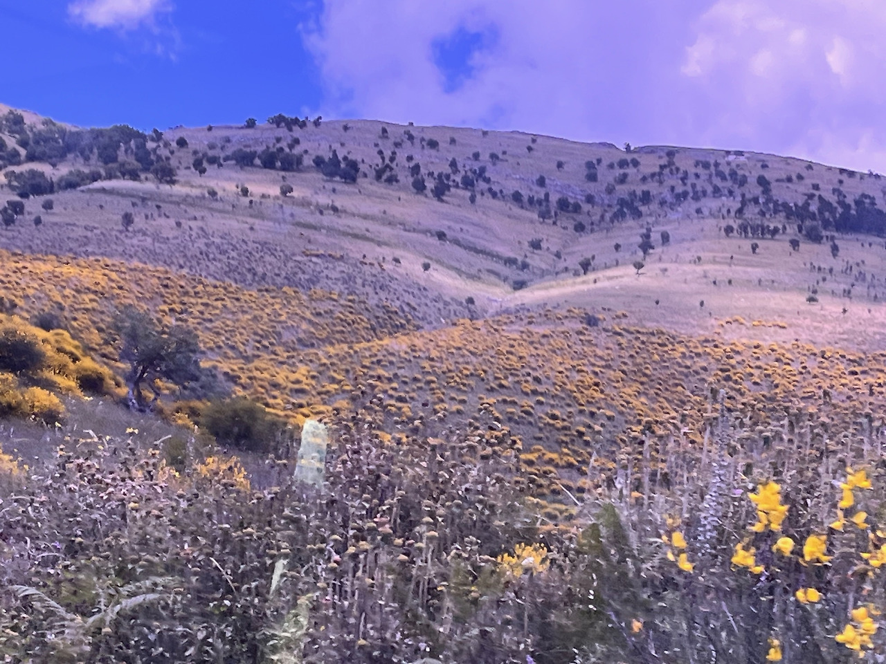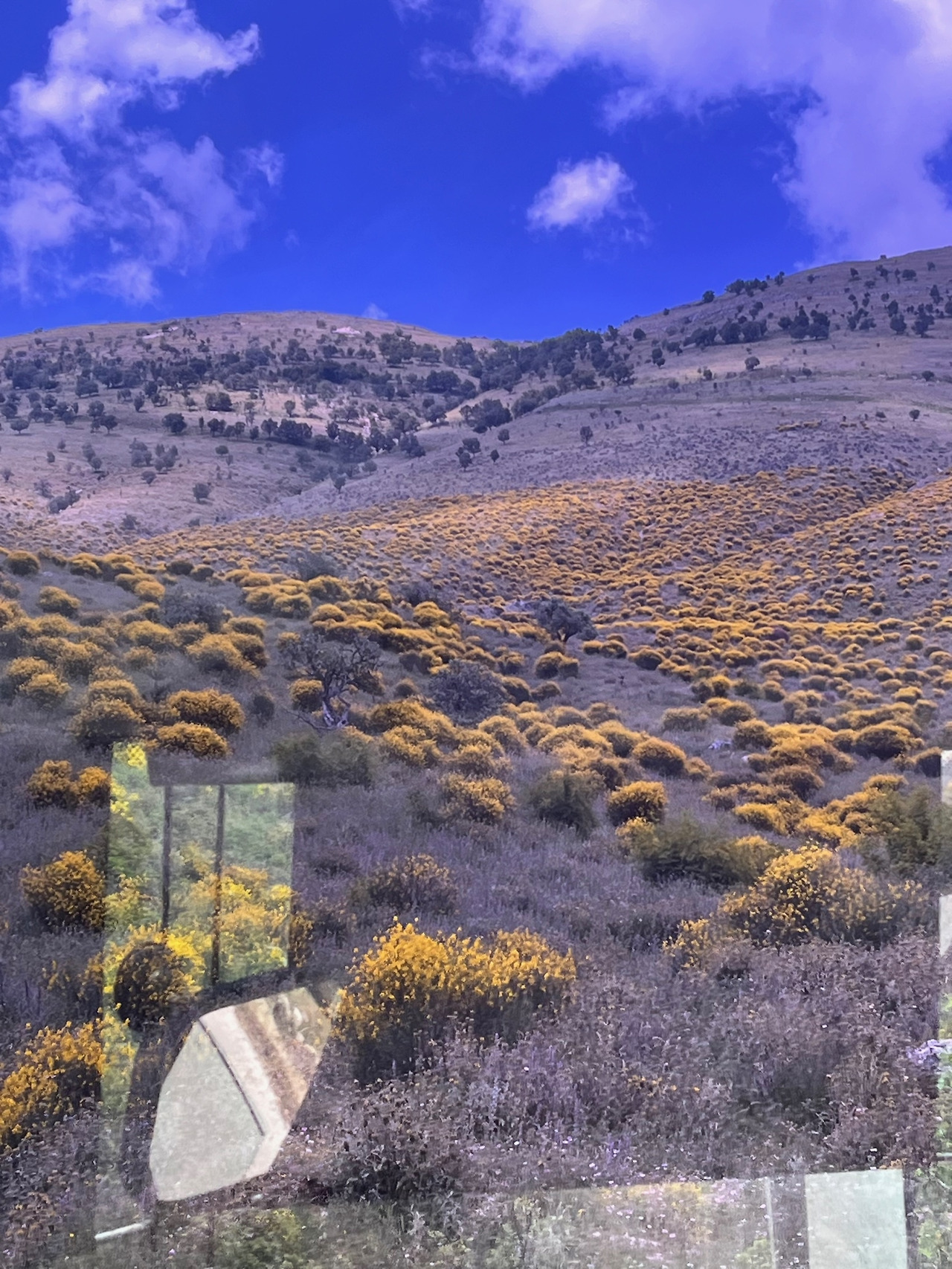 그렇게 한 시간 넘도록 기다린 끝에 사란다를 향해 출발했고, 버스는 우리가 왔던 도로가 아닌 다른 길로 접어들었다. 작은 여러 마을들을 지나면서 손님을 하나 둘 태웠고, 마을이 끊기는 지점에서부터는 산등성을 오른다. 산세는 온통 헐벗은듯한 민둥 바위산으로 거친 듯 고요하고 깊은 듯 열린 느낌을 주어 더욱 아름답다. 길가 꽃들은 오래전 알프스 산맥에서 보았던 것처럼 너무나 선연하고 아름답다. 붉은 자줏빛의 엉겅퀴 그 선명한 꽃송이가 어찌나 크고 기개가 있던지 그 어떠한 꽃도 비견될 수 없었다.
