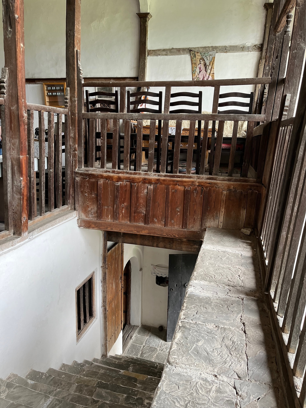 그리고는 삼면으로 여러 개의 방들이 미로처럼 짜여 있다. 또 어떤 방에서는 다락처럼 4층으로 연결된다. 방마다 벽난로와 붙박이 장이 설치되어 있고, 옆에는 욕실과 작은 공간에 화장실도 있다. 무려 그 시절에 편리를 위해 설치된 위층 화장실들을 보면서 잠깐 그 공법의 능력에 탄복하지 않을 수 없었다. 또 이 많은 수의 방들을 가늠하면서 꽤 대가족이었음을 짐작케 했다.