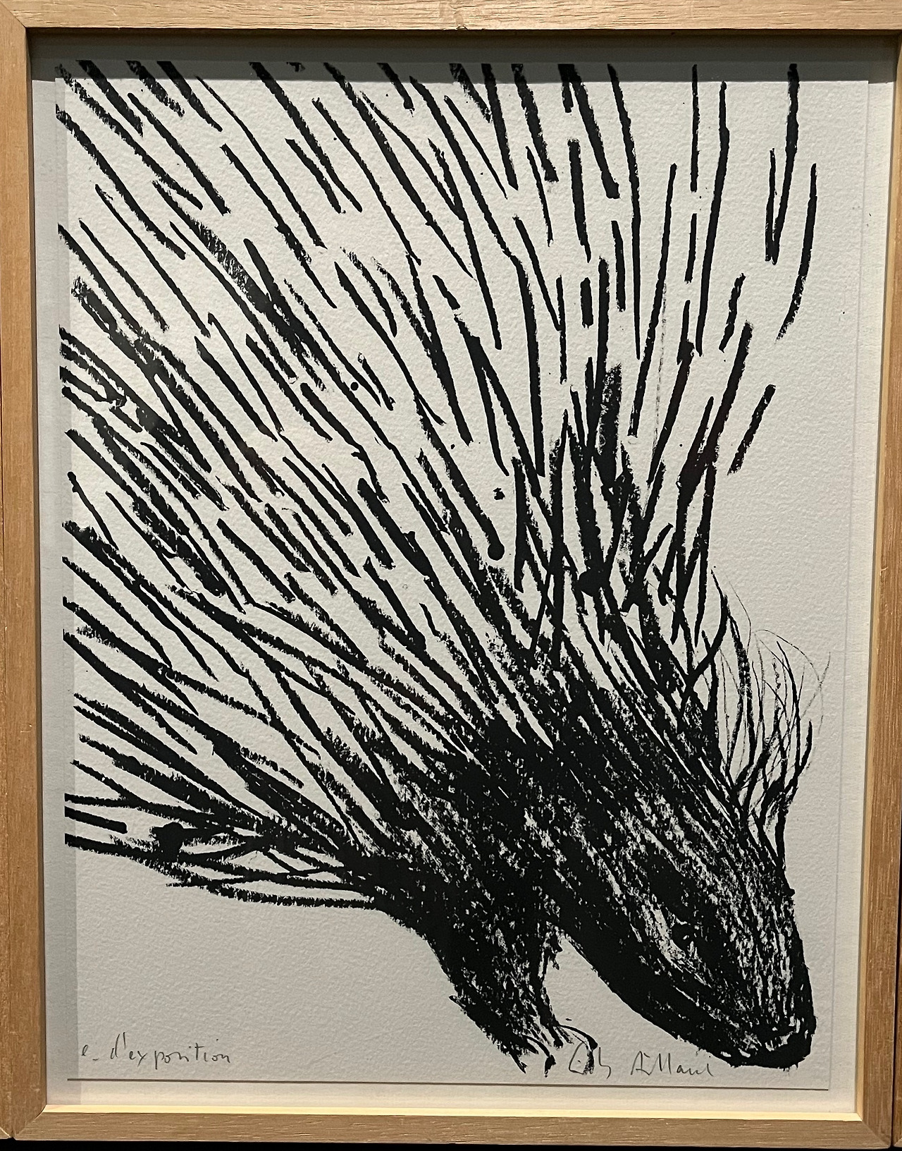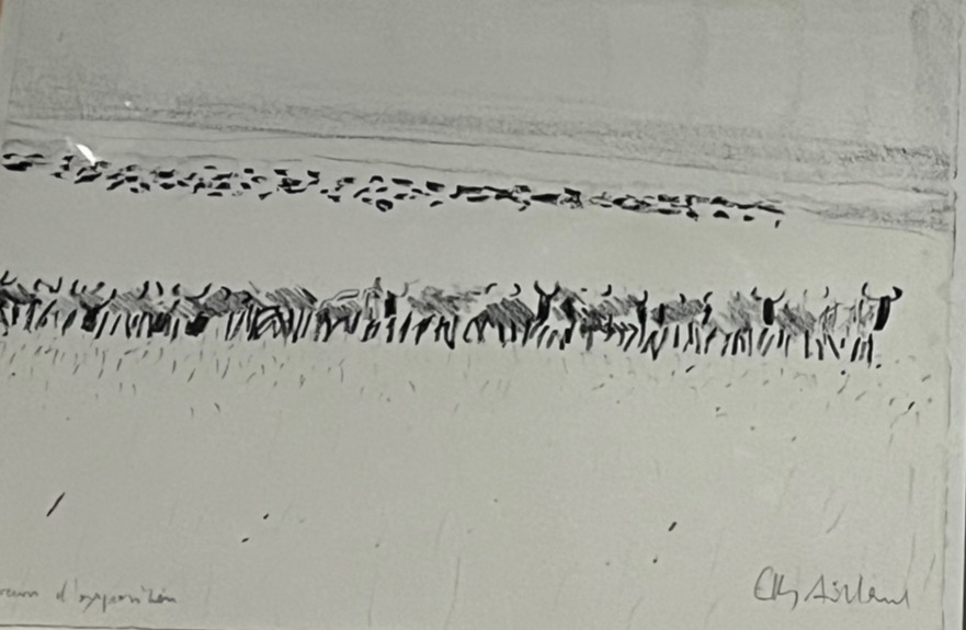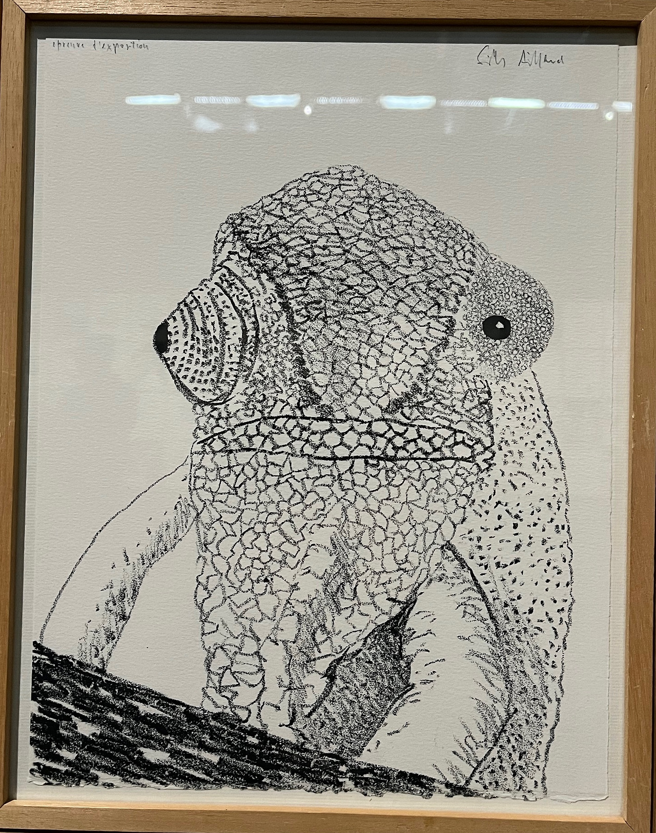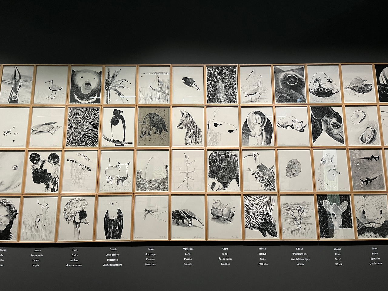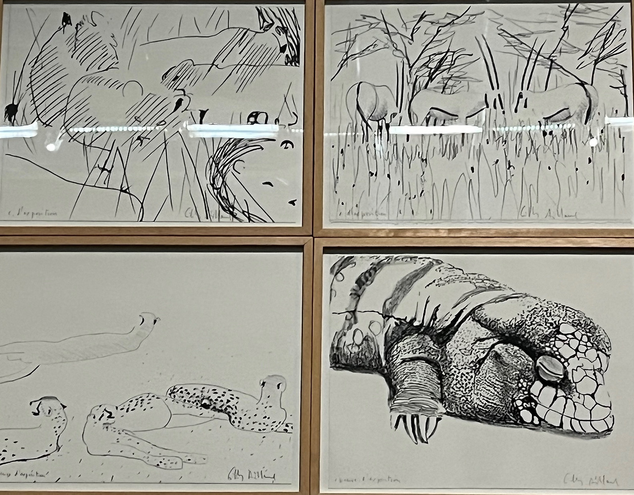 그리고 여기서 눈여겨볼 것은 데생처럼 보이는, 마치 동물의 도상 연구를 위한 백과사전 같은, 백여 점의 흑백 리토그래픽 작품들이다. 어느 한 점도 구도가 중복 또는 중첩되어 구상된 것 없다. 각각이 걸작이다. 동물의 특징에 따라 또는 그들이 처해진 상황에 따라 작가의 드로잉 기법은 다양한 방법으로 표현되었다. 어떤 것은 강한 이미지로 힘차게, 어떤 것은 유연하고 가늘게, 또 어떤 것에서는 보다 느낌을 반영하여... 어쨌든 한 점 한 점마다 그 나라를 상징하면서 그곳의 환경을 음미하는 즐거움도 있었다. 무엇보다 중요하게 여긴 점은 액자 속 그것들이 살아있다고 느껴졌다는 것이다.