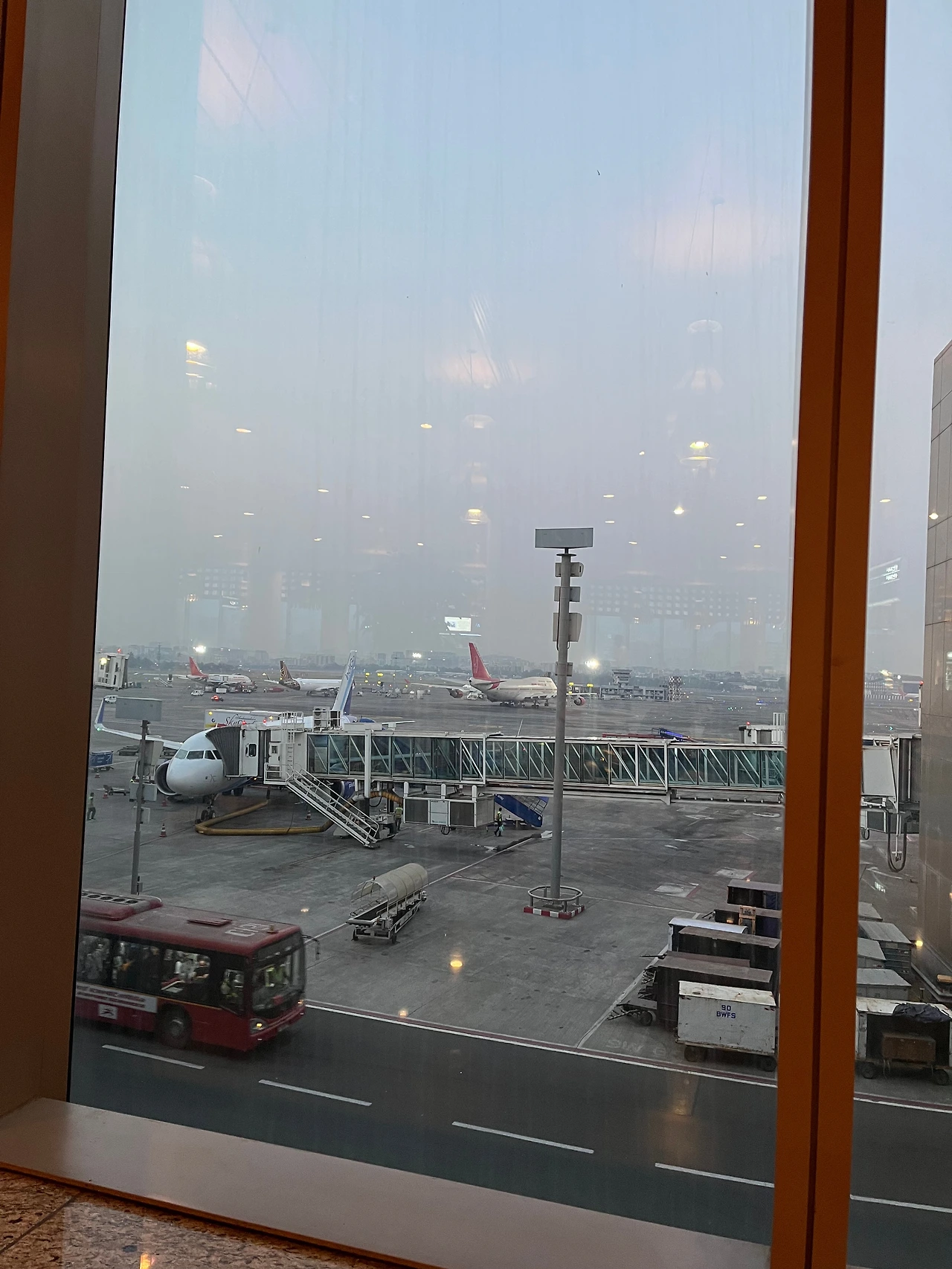 우리는 바레인을 경유하여 뭄바이 국제공항에 도착. 비행기에서 내려다본 시내는 거대했다. 더욱 놀란 것은 공항 주변에 빽빽이 들어선 잿빛의 빈민촌이었다. 공항 담벼락에 바짝 붙어 있다는 점에 놀랐고, 그 범위가 크다는데 또 놀랐다. 반면, 공항내부의 모습은 동양적이고 따뜻했다. 천장에 매달린 연꽃모양의 전등 장식에서 인도이미지가 물씬 풍겨났다.