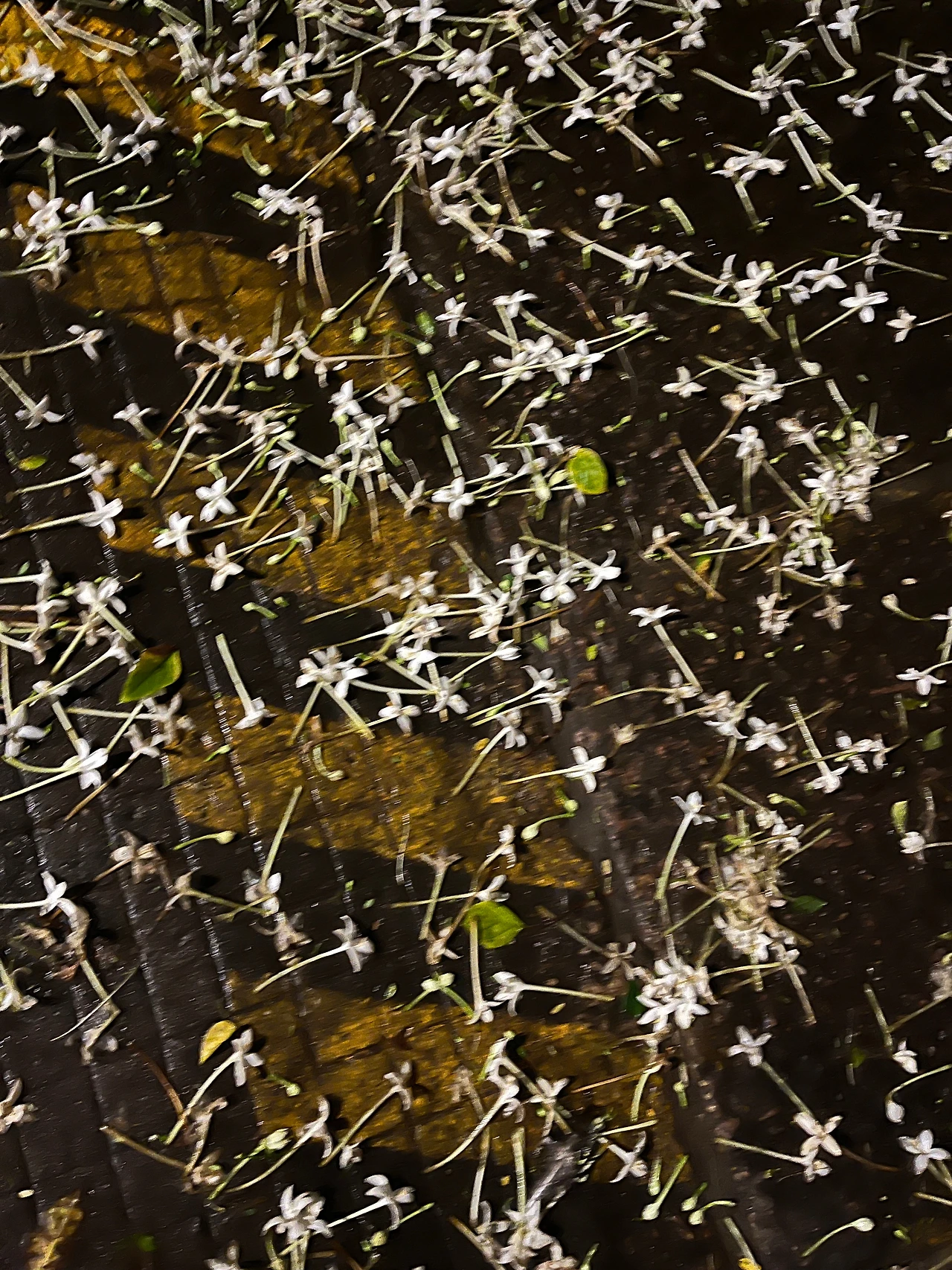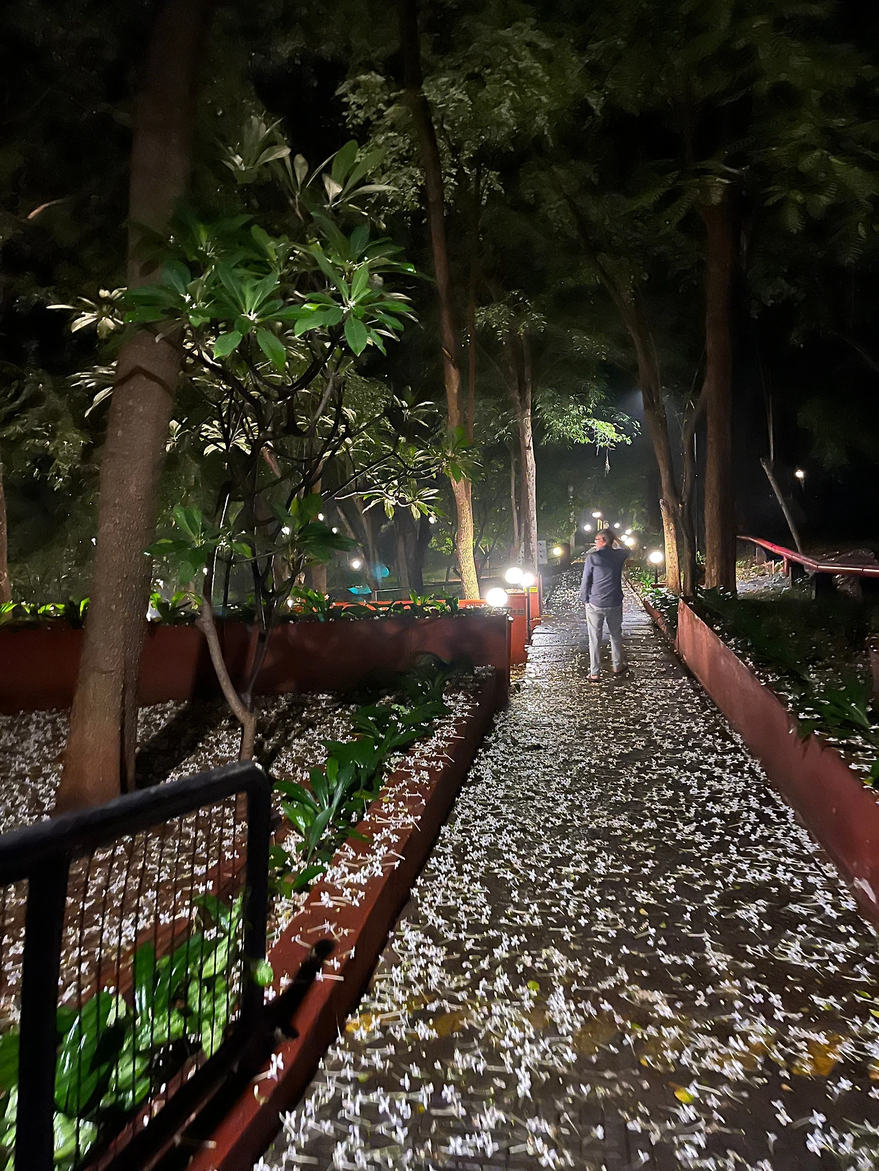소음도 쓰레기도 없다. 웅장하고 멋스럽게 자연이 조각한 나무들, 은은한 재스민 향기가 내 여정의 피로를 풀어준다. 거대한 지붕을 만든 나무들과 떨어진 꽃잎들이 바닥에다 꽃무늬 융단을 깔아놓아 마치 지상의 아름다운 낙원 같았다.