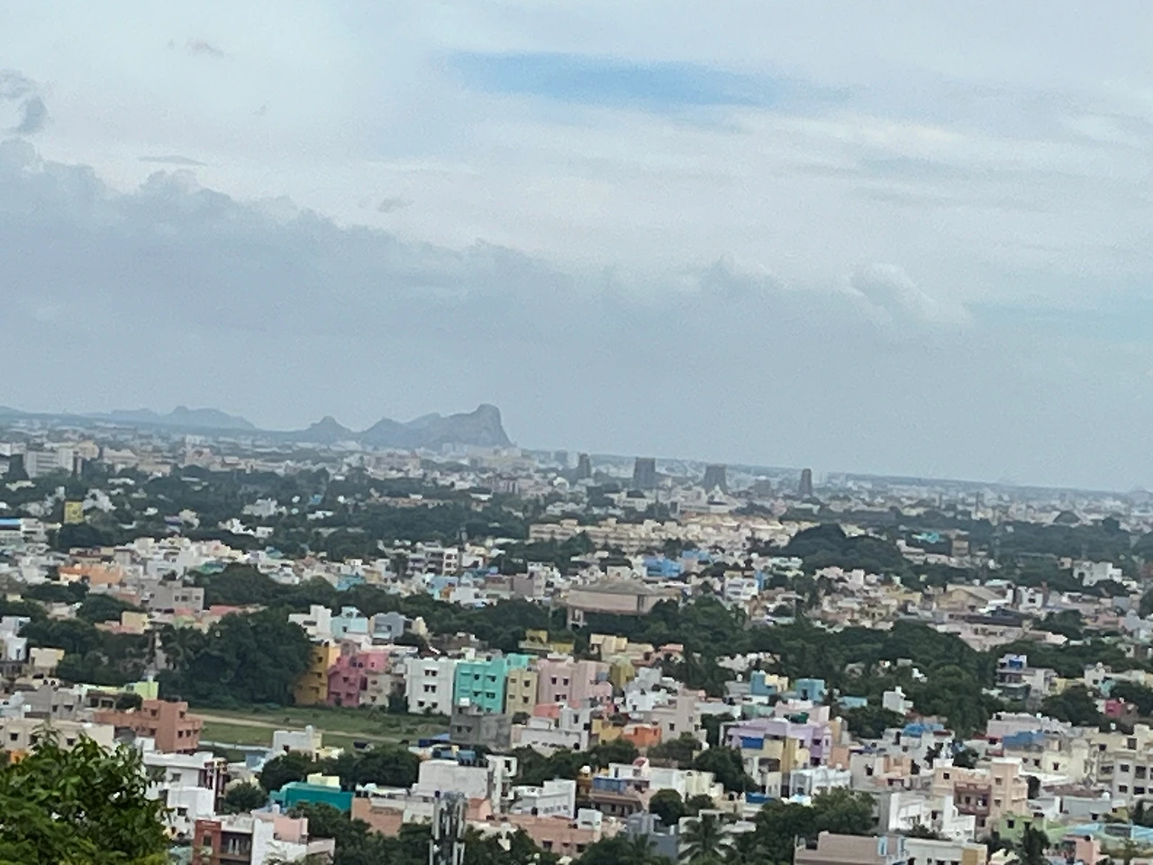 마두라이 시내가 한눈에 내려다 보인다. 저 멀리 도심 속에 그 유명한 미낙시(Minâkshî) 사원도 보인다.