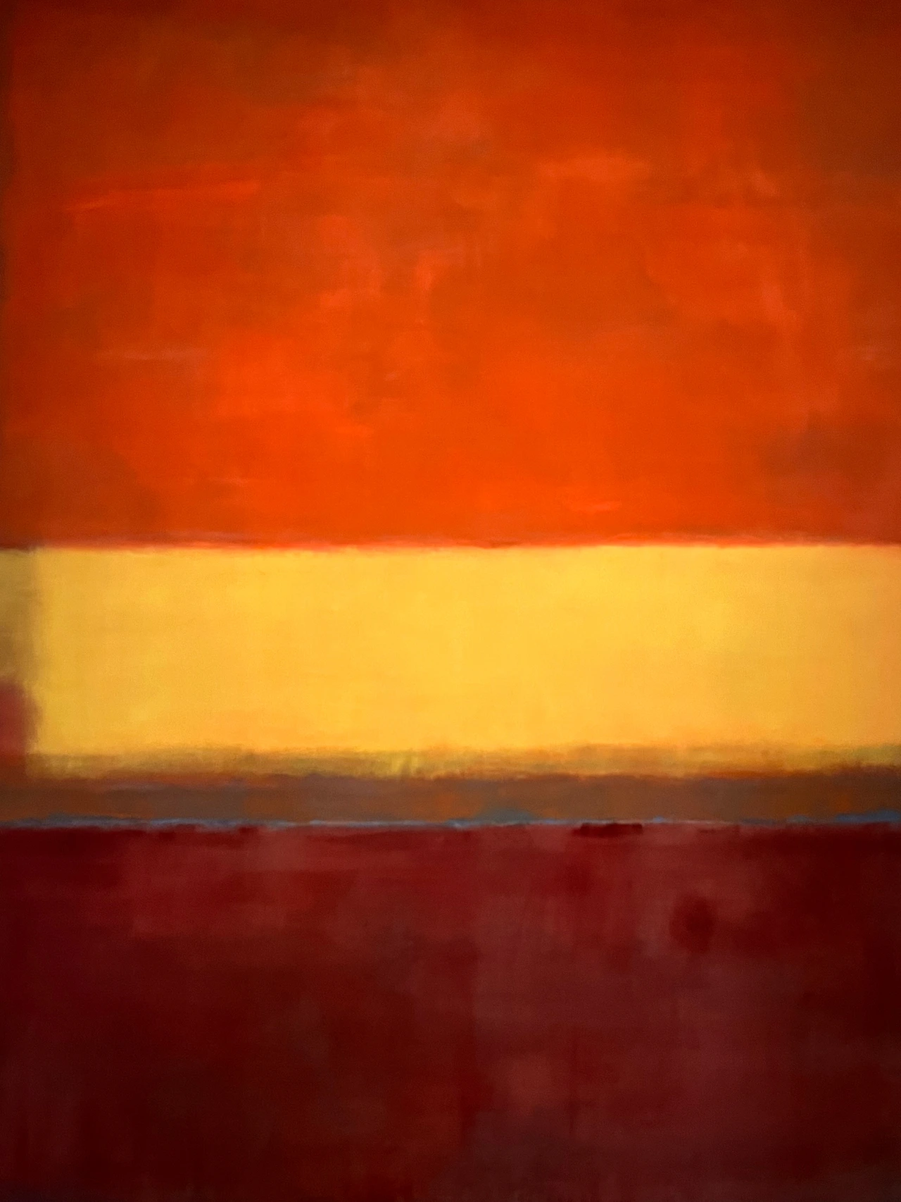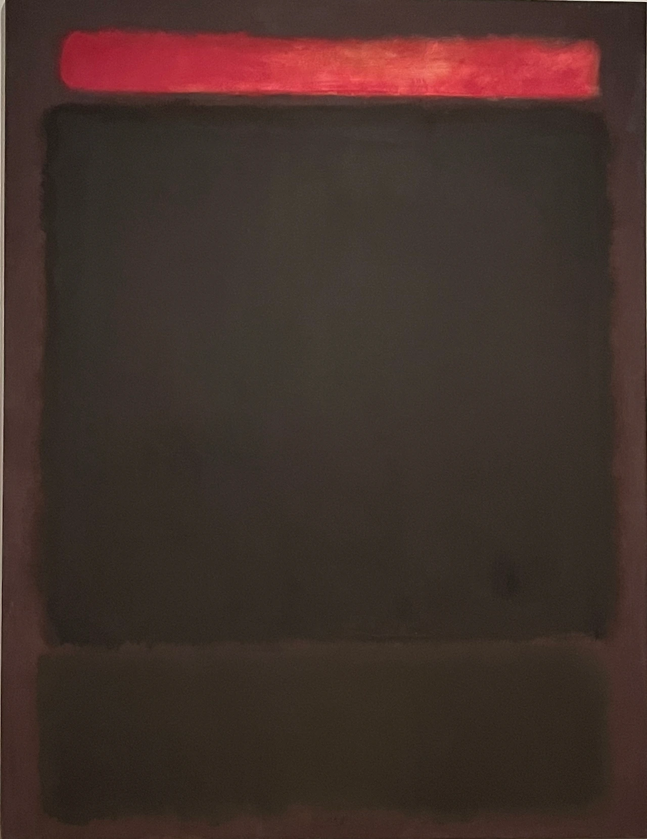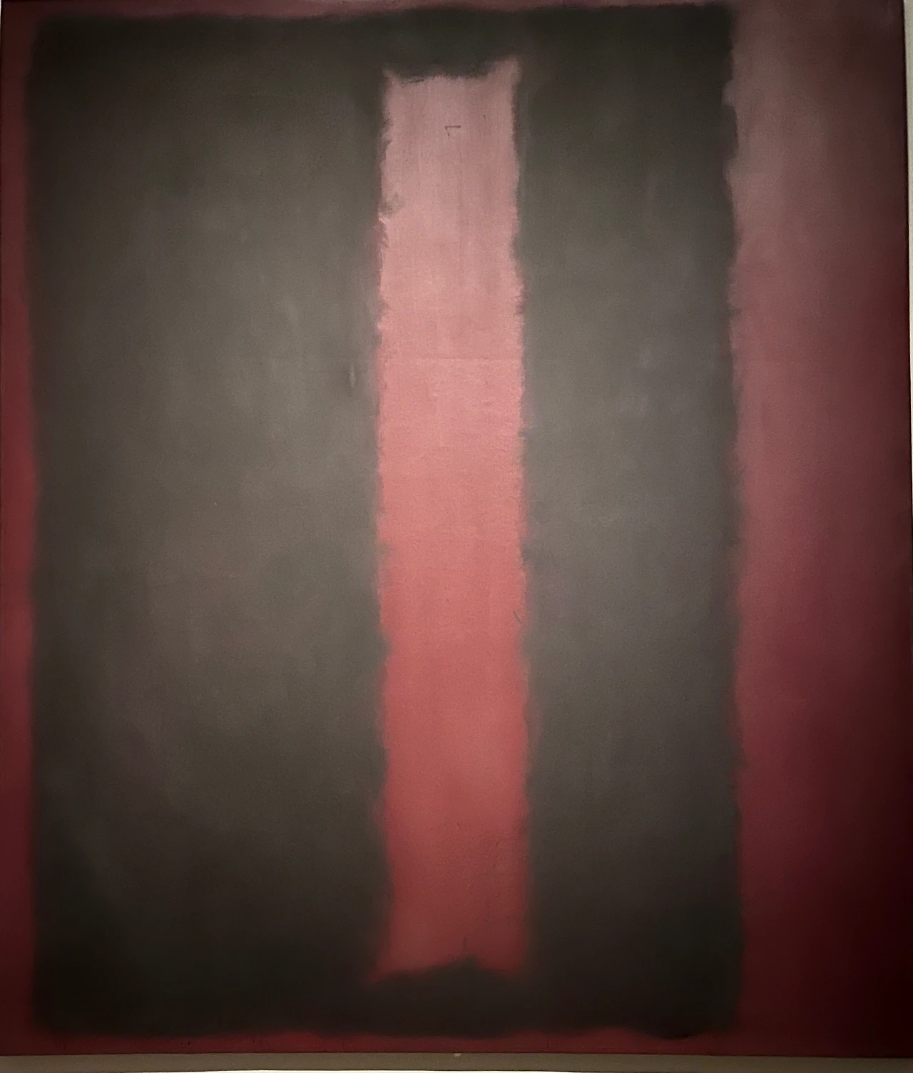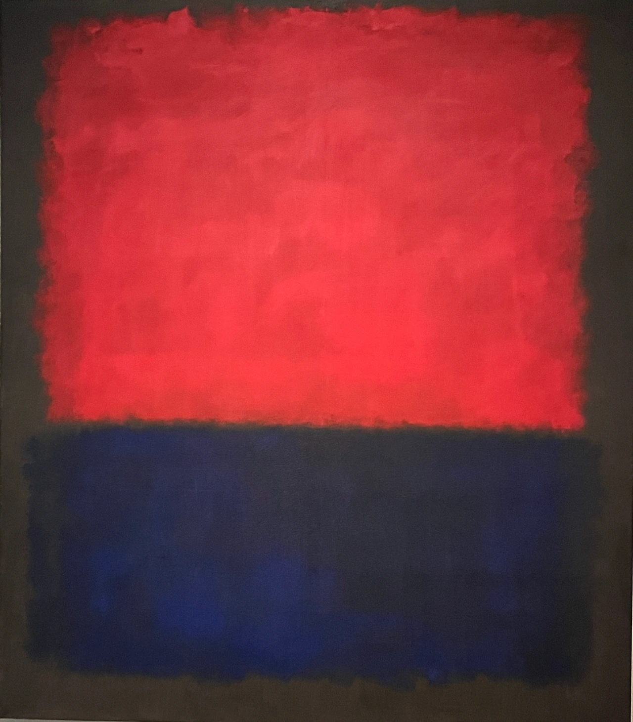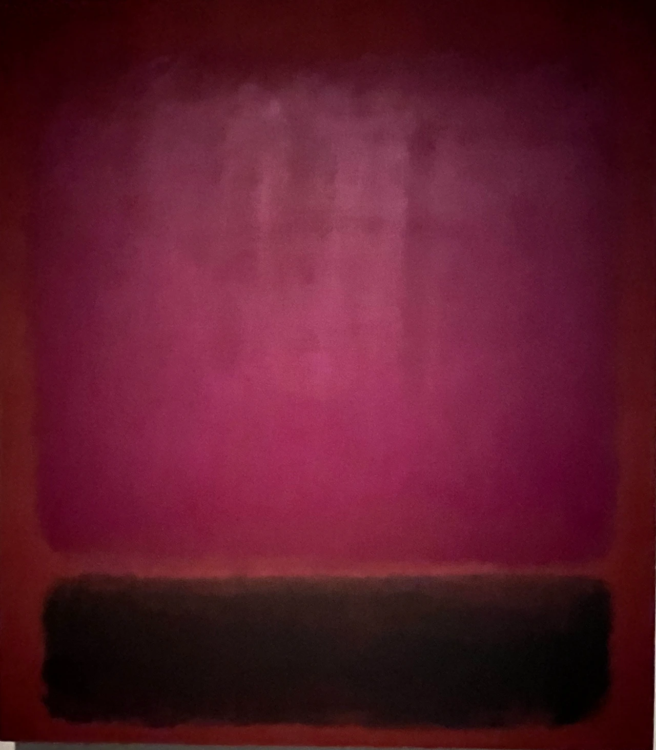 아마도 여러 이유 중 하나는 우리가 당장 달려가서 볼 정도로 마크 로스코 작품을 좋아하지 않는지도 모른다. 솔직히 말해서 평소 그의 작품이 나의 발길을 강하게 마구 잡아당긴다거나 그 앞에서 매우 가슴 벅찬 감동으로 흥분되지는 않았다. 닫히고 고정된 구도와 흐리고 희미한 질감은 약간 답답하게 느껴져 크게 울림을 안겨주지는 않았다. 물감이 화선지 위에서 서서히 번지는 듯이 잔잔하게 떨리는 진동과 두, 세 가지 겹치는 색의 조화가 은은하고 부드러워 명상적인 평온함을 주기도 하지만 반면, 자욱한 안개나 구름을 연상케 하는 몽롱함, 그래서 가끔은 졸리기도 지루함을 주기도 했었다. 따라서 내게 더 이상의 강렬한 힘과 내적 에너지를 끌어올리는 자극제 역할은 없었다. 이 점은 그의 그림이 나쁘다는 것이 전혀 아니라, 내 기호에 절대적이지 않다는 뜻이다.