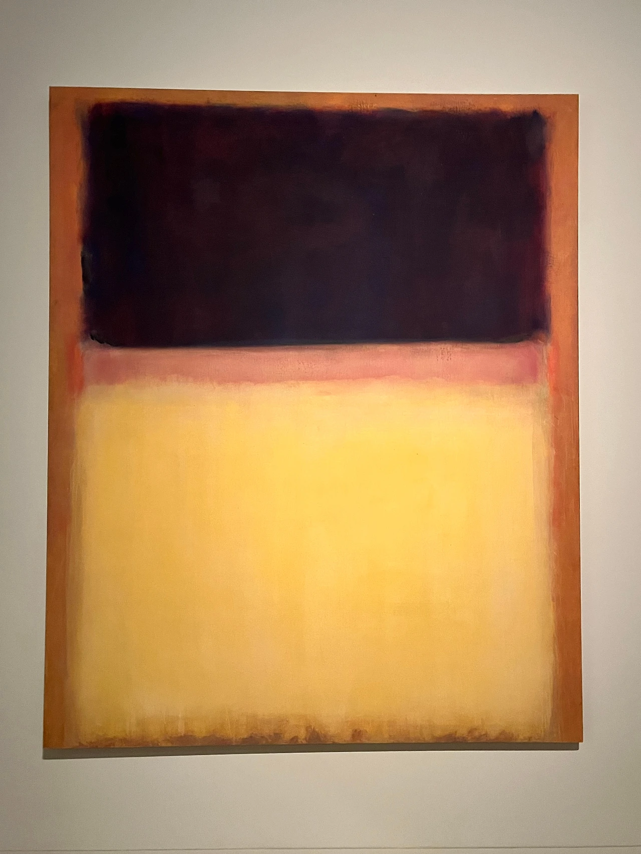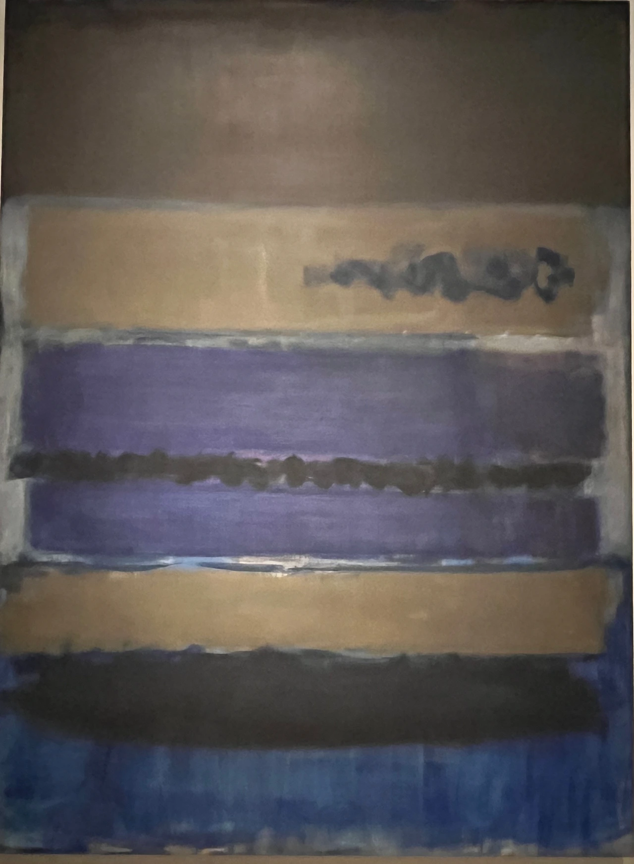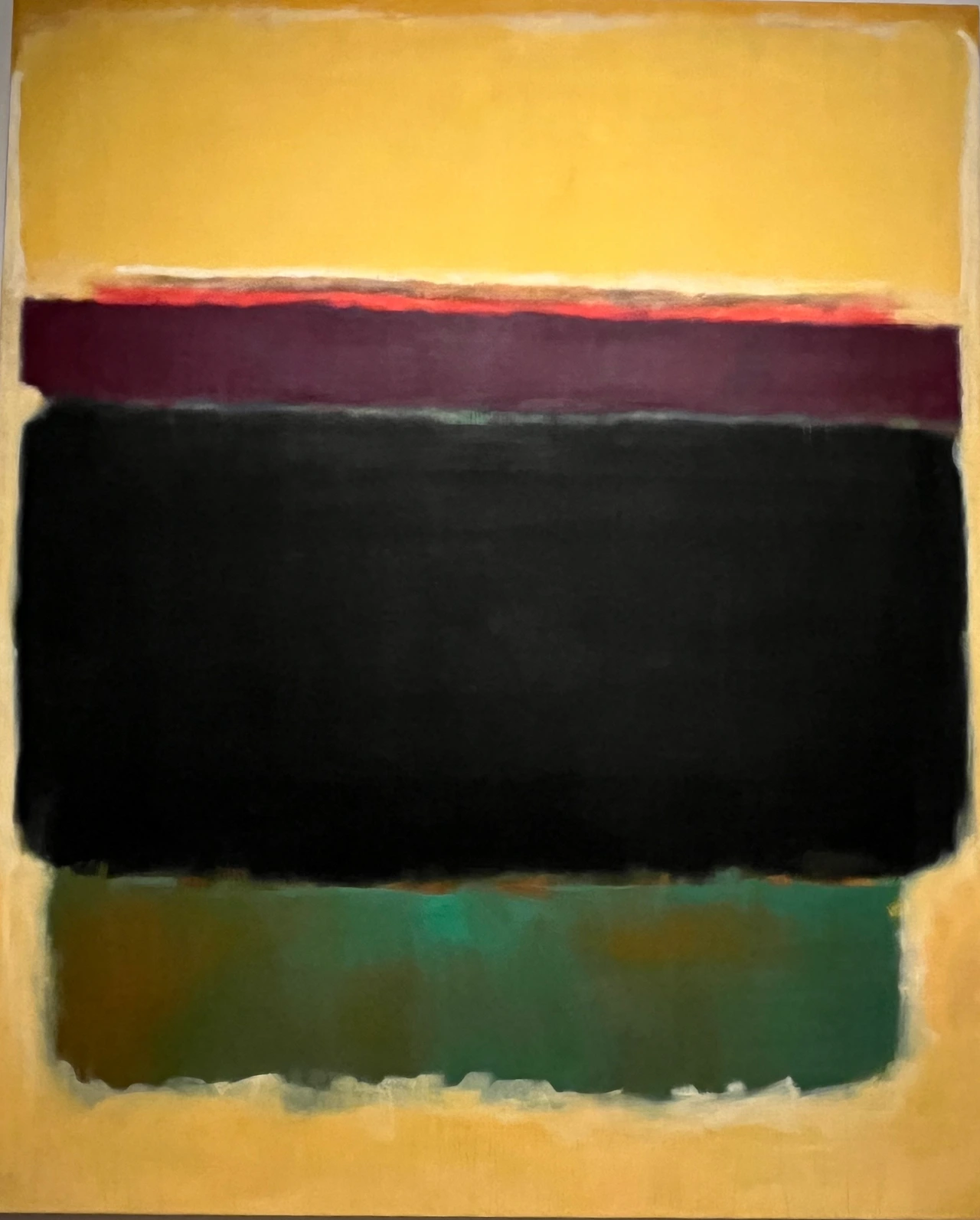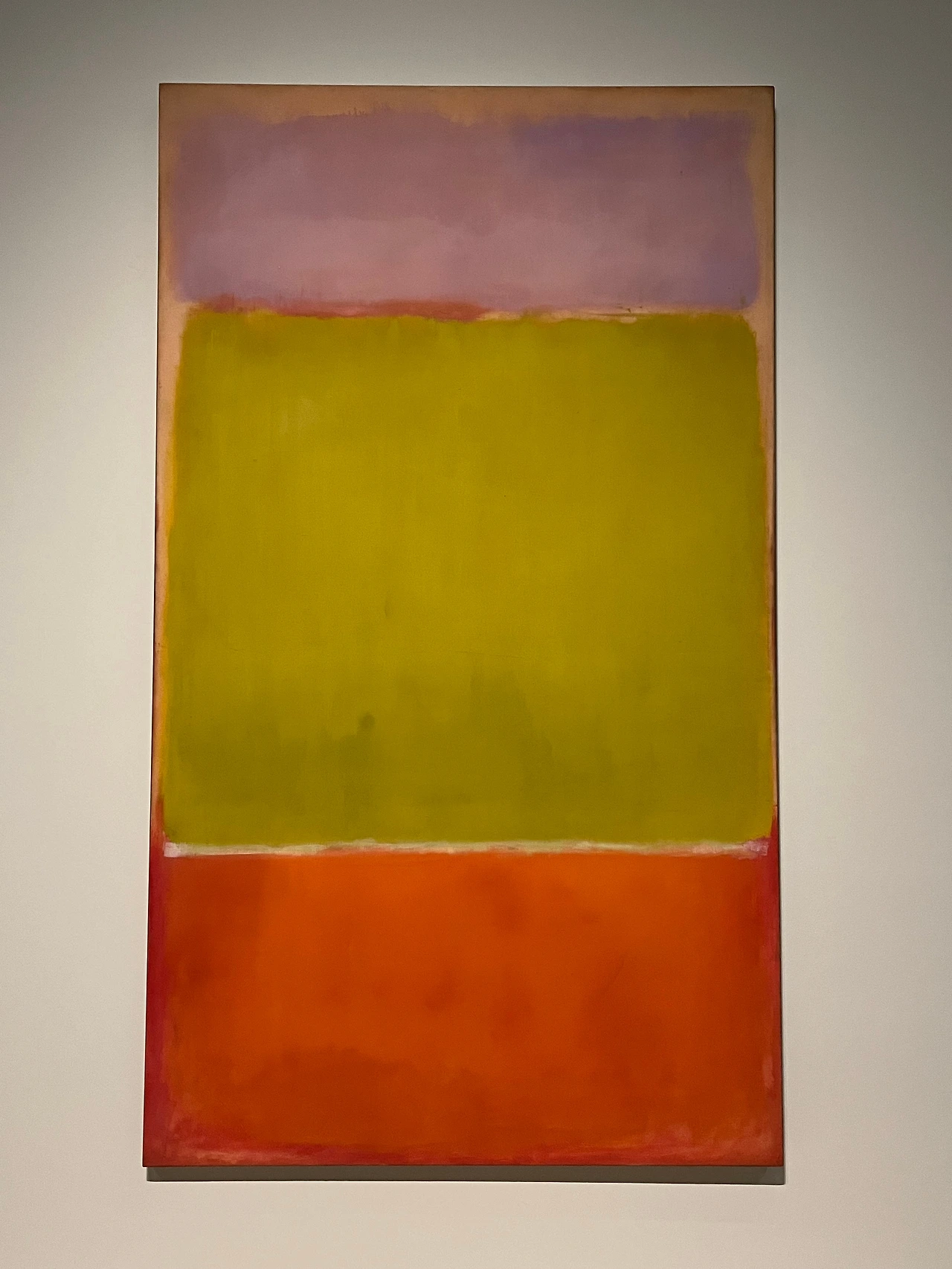 아마도 여러 이유 중 하나는 우리가 당장 달려가서 볼 정도로 마크 로스코 작품을 좋아하지 않는지도 모른다. 솔직히 말해서 평소 그의 작품이 나의 발길을 강하게 마구 잡아당긴다거나 그 앞에서 매우 가슴 벅찬 감동으로 흥분되지는 않았다. 닫히고 고정된 구도와 흐리고 희미한 질감은 약간 답답하게 느껴져 크게 울림을 안겨주지는 않았다. 물감이 화선지 위에서 서서히 번지는 듯이 잔잔하게 떨리는 진동과 두, 세 가지 겹치는 색의 조화가 은은하고 부드러워 명상적인 평온함을 주기도 하지만 반면, 자욱한 안개나 구름을 연상케 하는 몽롱함, 그래서 가끔은 졸리기도 지루함을 주기도 했었다. 따라서 내게 더 이상의 강렬한 힘과 내적 에너지를 끌어올리는 자극제 역할은 없었다. 이 점은 그의 그림이 나쁘다는 것이 전혀 아니라, 내 기호에 절대적이지 않다는 뜻이다.