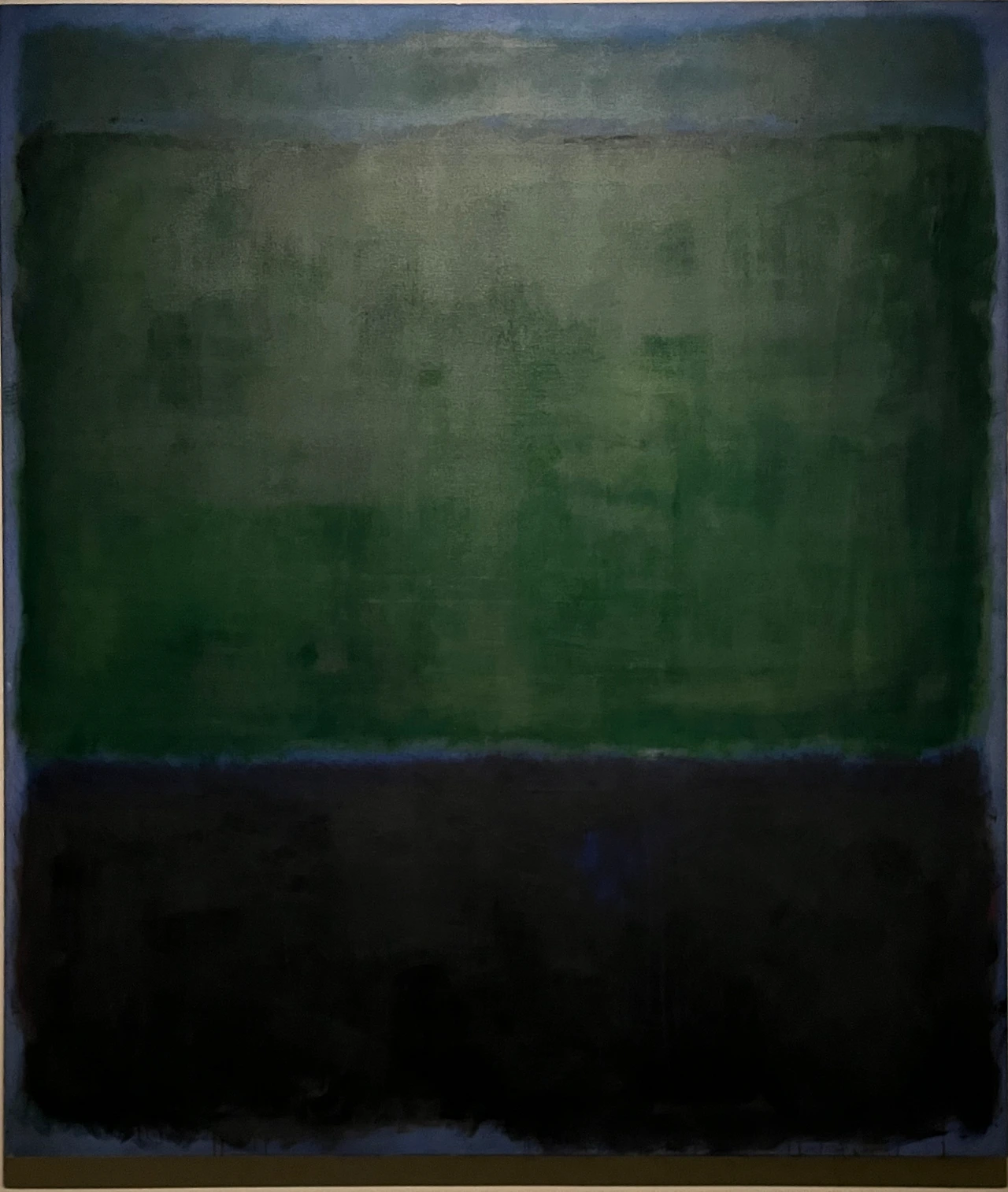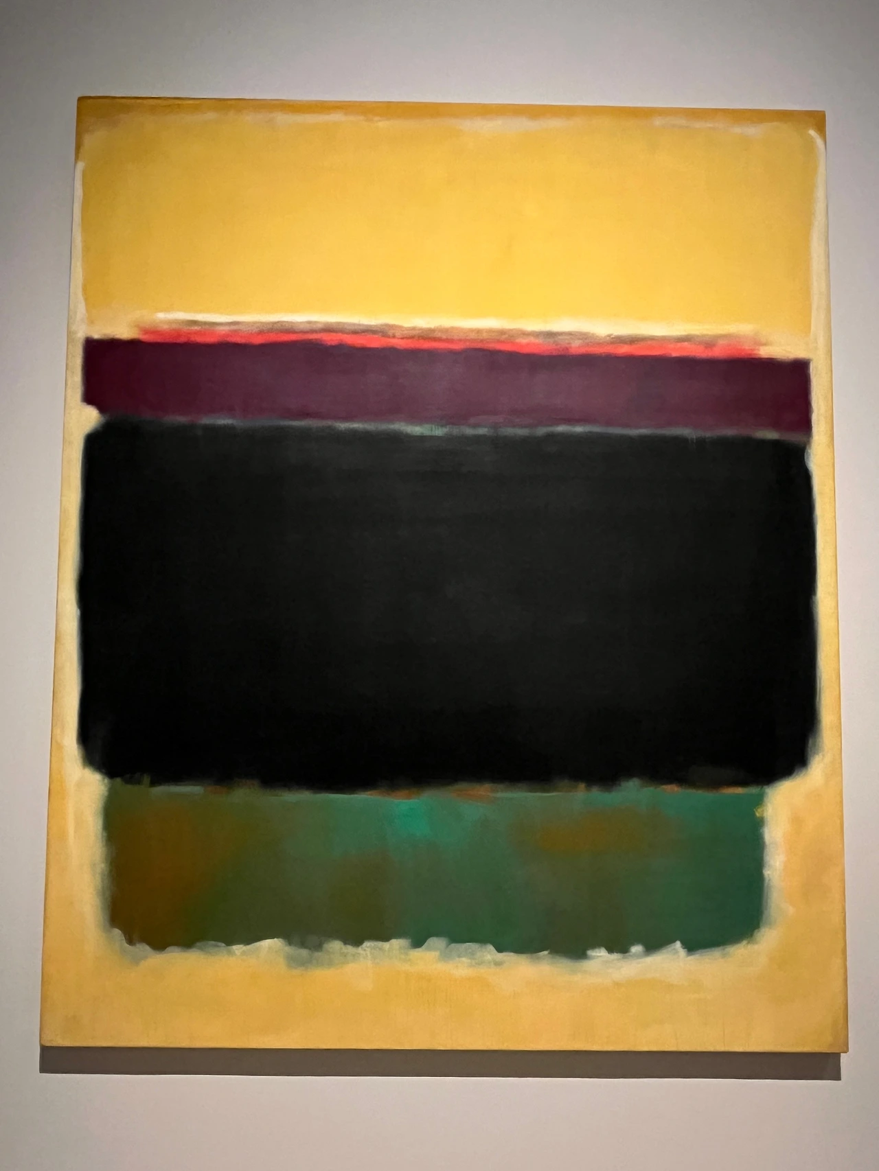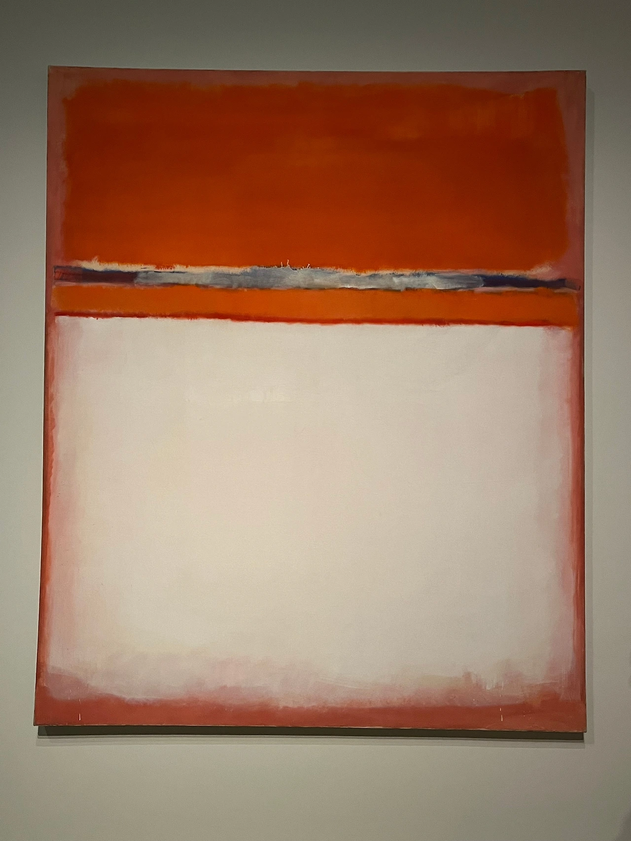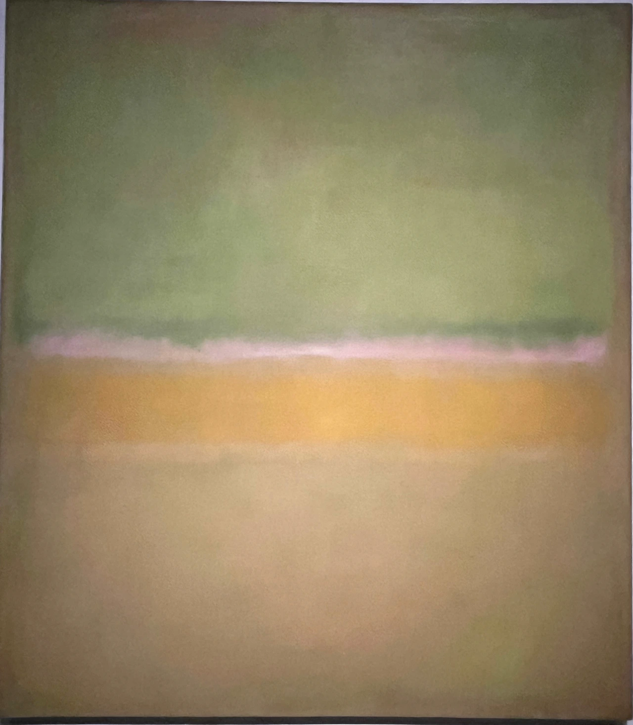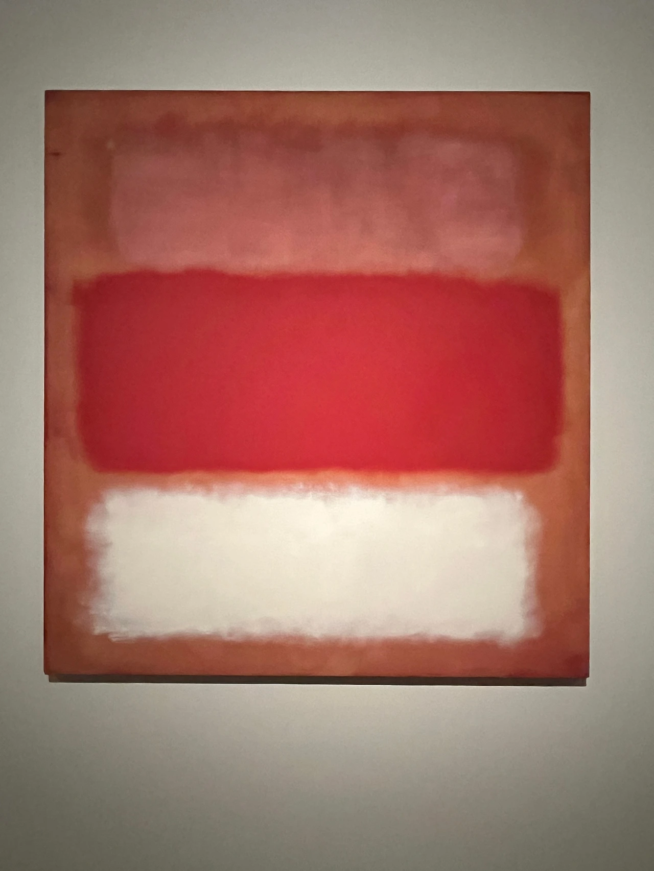 아마도 여러 이유 중 하나는 우리가 당장 달려가서 볼 정도로 마크 로스코 작품을 좋아하지 않는지도 모른다. 솔직히 말해서 평소 그의 작품이 나의 발길을 강하게 마구 잡아당긴다거나 그 앞에서 매우 가슴 벅찬 감동으로 흥분되지는 않았다. 닫히고 고정된 구도와 흐리고 희미한 질감은 약간 답답하게 느껴져 크게 울림을 안겨주지는 않았다. 물감이 화선지 위에서 서서히 번지는 듯이 잔잔하게 떨리는 진동과 두, 세 가지 겹치는 색의 조화가 은은하고 부드러워 명상적인 평온함을 주기도 하지만 반면, 자욱한 안개나 구름을 연상케 하는 몽롱함, 그래서 가끔은 졸리기도 지루함을 주기도 했었다. 따라서 내게 더 이상의 강렬한 힘과 내적 에너지를 끌어올리는 자극제 역할은 없었다. 이 점은 그의 그림이 나쁘다는 것이 전혀 아니라, 내 기호에 절대적이지 않다는 뜻이다.