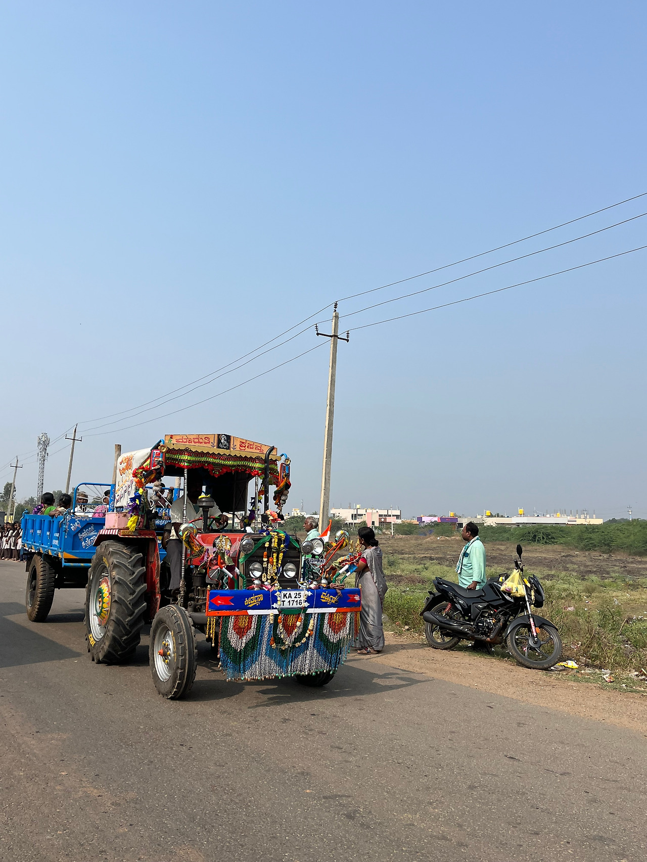 이 또한 도로 위 온갖 이동수단의 화려하고 원색적인 장식은 마치 서커스단의 행렬이나 공연장을 방불케 했고, 층층이 쌓아 올린 사탕수수의 위험천만한 곡예, 오색띠와 꽃들, 식물잎으로 치장한 색다른 차량들 모습은 카르나다카 주이기에 가질 수 있는 고유풍습이자 기묘한 광경이었다. 그중 화려한 장식의 대형 트럭들은 어느 대지주의 소유물임을 짐작케 했고, 더 멀리 영국식민지 시절의 한 측면을 엿보는 것도 같았다. 그러나 이것은 힌두신을 섬기는 그들이 무사일생을 기원하는 축제의 장이었다.