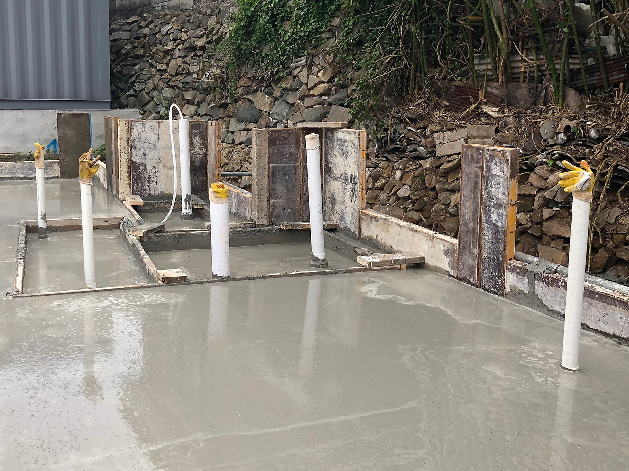 기초 콘크리트 타설 작업을 마무리하고 콘크리트가 굳기를 기다리며 주말을 보냈다. 콘크리트가 단단하게 굳을 때까지는 28일 정도가 걸린다고 한다. 양생 기간 동안 콘크리트는 천천히 수분을 뱉으며 자리를 잡고 견고한 기초가 되어준다고 한다. 그렇다고 해서 28일 동안 아무 작업을 하지 않는 것은 아니다. 사흘 정도 콘크리트 표면이 굳기를 기다렸다가 작업을 이어간다. 기초 콘크리트 표면이 단단히 굳은 것을 확인하고 둘레에 친 형틀을 제거했다.