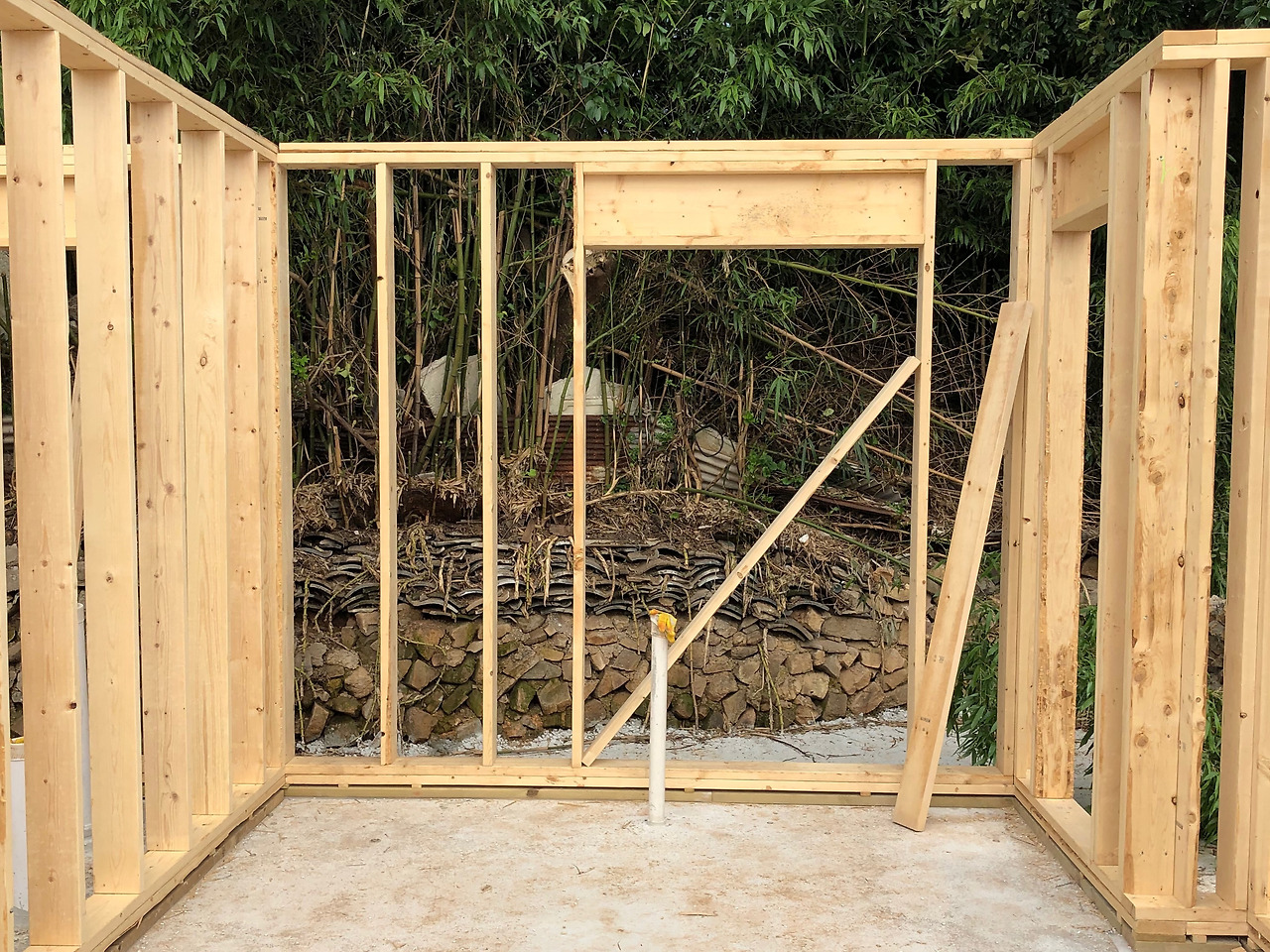 목재를 하나하나 규격에 맞게 자르고 벽체를 만들었다. 그렇게 만든 벽들을 세워서 조각 맞추기 하듯 이어 붙였다. 그렇게 외벽과 내벽이 하나하나 세워지는 것을 보니 신기해서 입이 떡 벌어졌다.