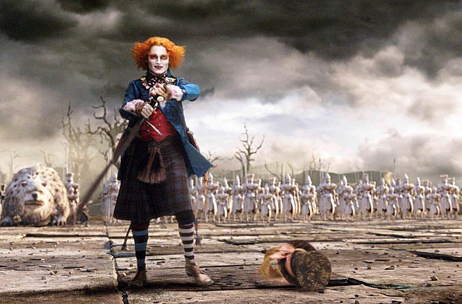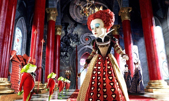 팀 버튼 월드를 잇는 '붉은 여왕' 헬레나 본햄카터 대 '하얀 여왕' 앤 헤서웨이의 주도권 대결.