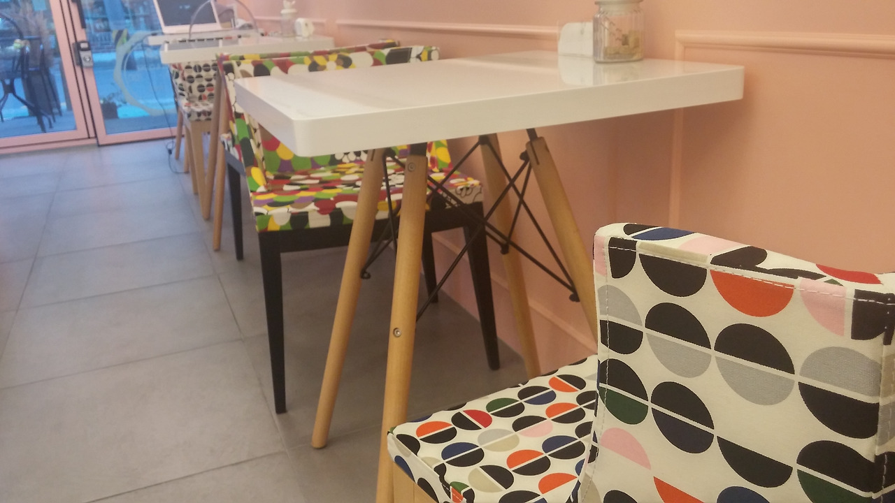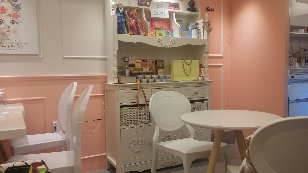 카페 내부 벽면에 화이트라 깔끔해요