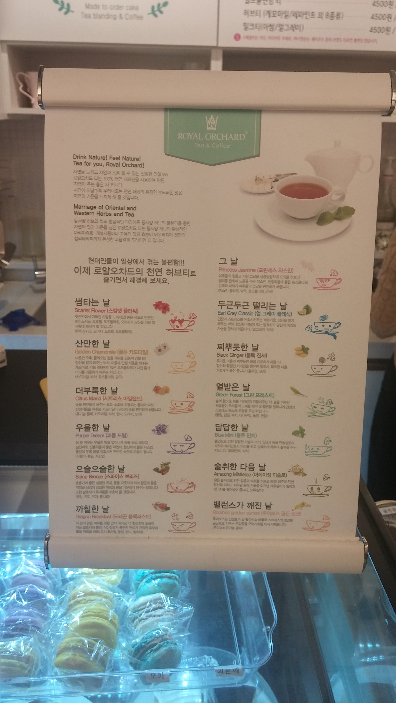 메뉴판 아래로 각양각색 마카롱도 있고요