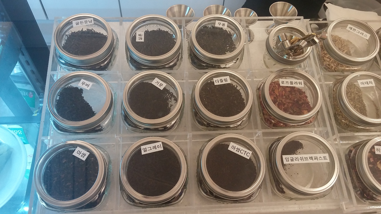 요즘은 홍차나 허브티를 이렇게 다양하게 고를 수 있는 곳이 드문데, 천연 허브티 카페 답네요