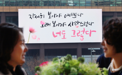 지난해 '내 마음을 울리는 광화문글판은?'이라는 주제로 진행한 온라인 투표 결과, 사람들의 사랑을 가장 많이 받았던 글귀 'BEST 10' 가운데 1위는 2012년 '봄편'에 적힌 시인 나태주의 시 '풀꽃' 중 '자세히 보아야 예쁘다./ 오래 보아야 사랑스럽다./ 너도 그렇다.' 싯구가 차지했다고 해요.