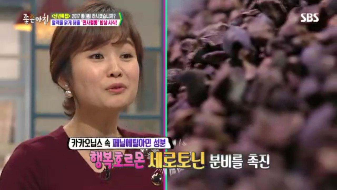 특히, 한명화 한의사는 "카카오닙스 속의 페닐아틸아민이란 성분이 행복호르몬으로 알려진 세로코닌 분비를 촉진한다"며 카카오닙스 예찬론을 펼쳤습니다.
