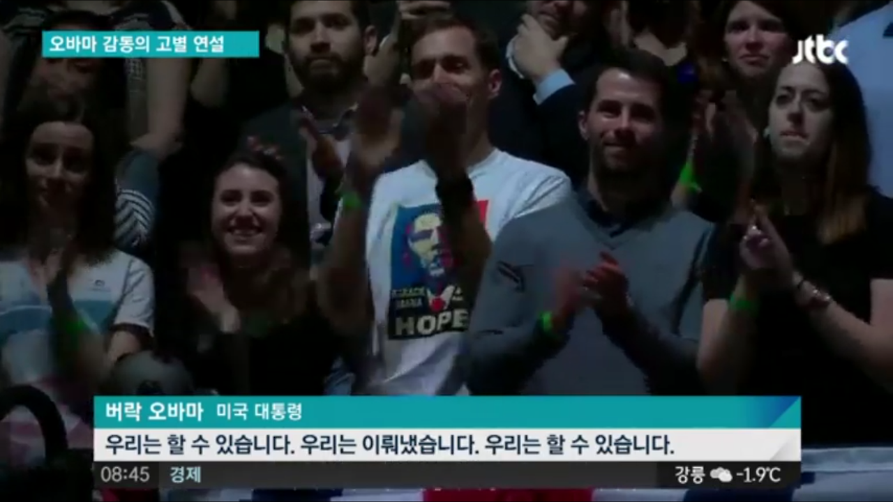 오바마 대통령은 지난 10일(현지시간), 자신의 정치적 고향인 시카고에서 50분간 고별 연설을 했고, 그는 "변화는 나의 능력이 아니라 시민이 함께 참여하고 연대해서 이룰 수 있었다"면서 "Yes, we can! Yes, we did !"라는 마지막 메시지로 미국 국민들에게 변화 능력을 믿을 것을 당부했지요.