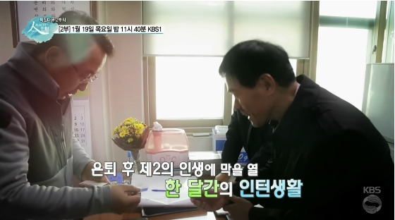 새해 초 2부작으로 방영된 KBS 특집다큐 <시니어 도전기, 인턴>에서는 평균 나이 65세의 시니어 3인이 은퇴 후 제2의 인생을 위해 각자의 경력을 살려 황혼 취업에 도전하기 위해 한 달간 인턴 생활을 소개하면서 인턴 기간이 끝나고 각각 활동한 회사로부터 근로계약을 쓸지 여부를 타진했죠.