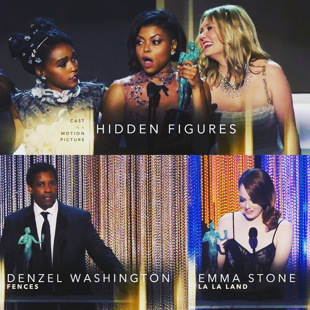 SAG어워즈의 하일라이트인 영화부문 캐스팅상 역시 타라지 P. 헨슨, 옥타비아 스펜서, 자넬 모네 등 흑인 여배우 3인과 케빈 코스트너, 커스틴 던스트가 출연한 영화 <히든 피겨스>가 할리우드 배우들의 마음을 사로잡으며 영예를 차지함으로써 오스카 시상식에서 검은 돌풍에 더해 거센 여풍이 전망됐어요.