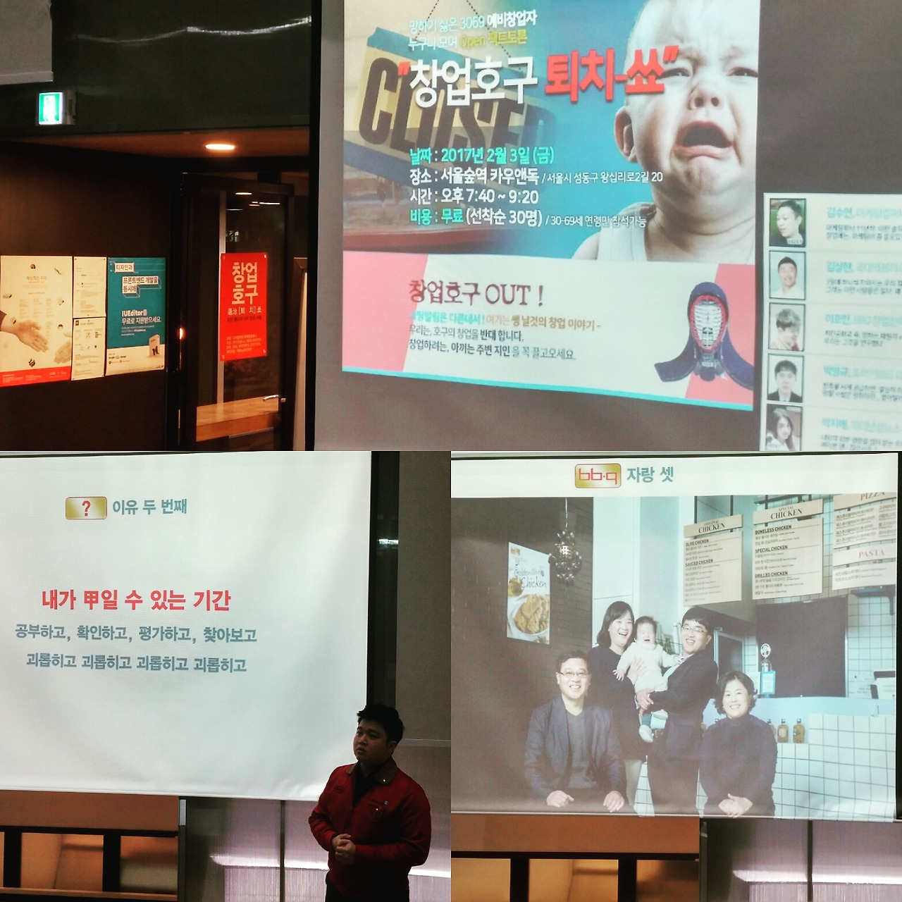 이어 발제자로 나선 BBQ치킨 등 10여개의 브랜드를 운영하고 있는 제네시스 창업전략연구소의 이호민 팀장은 "기존에 청년 층의 도전이나 스타트업이 아닌 인생의 막다른 골목에서 창업을 하는 국내의 창업 생태계가 아직 성숙하지 못했다"며 말을 이어 갔습니다.