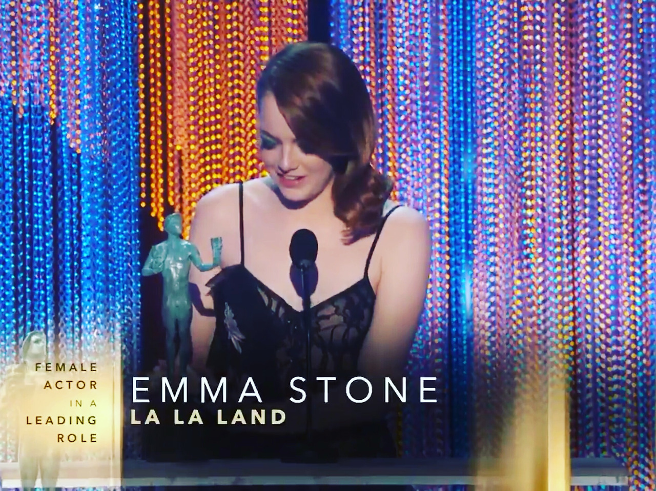 <라라랜드>의 엠마 스톤은 수상소감에서 “영국 아카데미가 창조성에 대한 긍정적인 선물을 축하하고, 그것이 어떻게 국경을 초월하여 사람들이 조금 덜 혼자가 느낄 수 있게 해준다”라고 말했다.