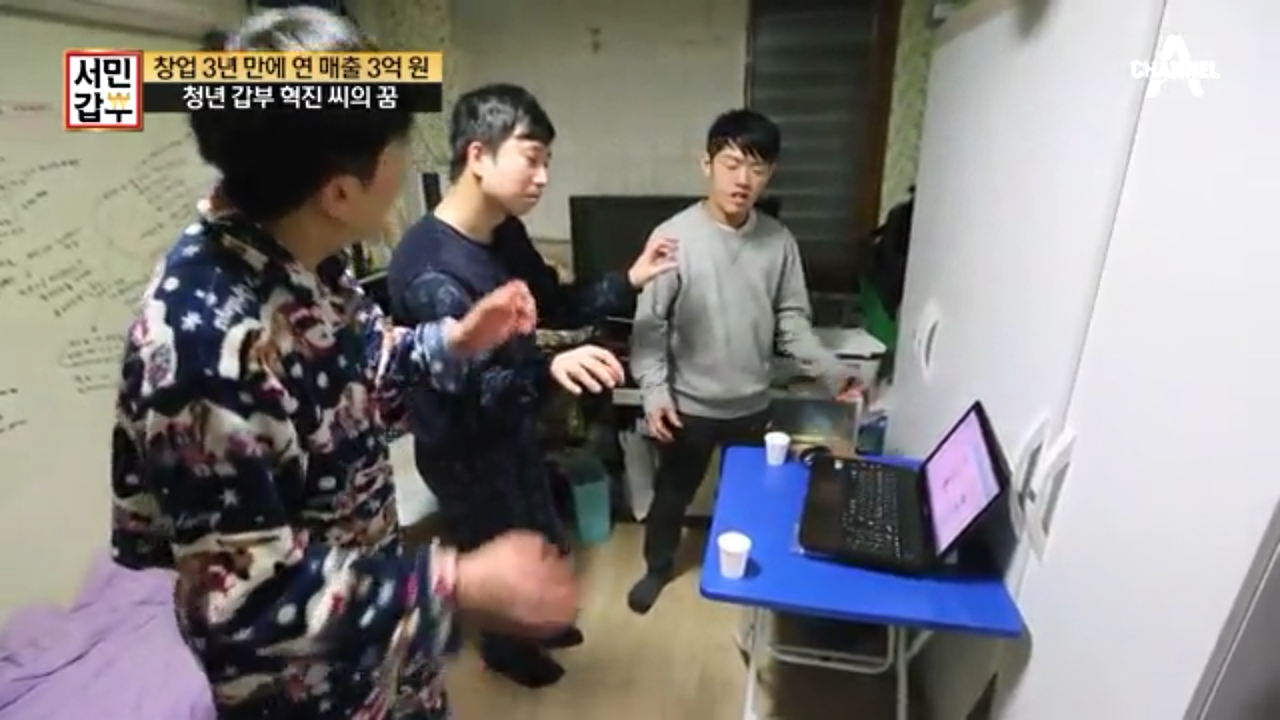 이 가게에 들어서면 윤 대표를 포함해 3인의 종업원이 있는데 윤 대표와 반지하 방에서 합숙하고 있는 창업 멤버로, 이들에게도 각자 가게를 내주는 걸 목표로 돈을 모으느라 갑부인데도 큰 집으로 넓히지 않았다고 합니다.