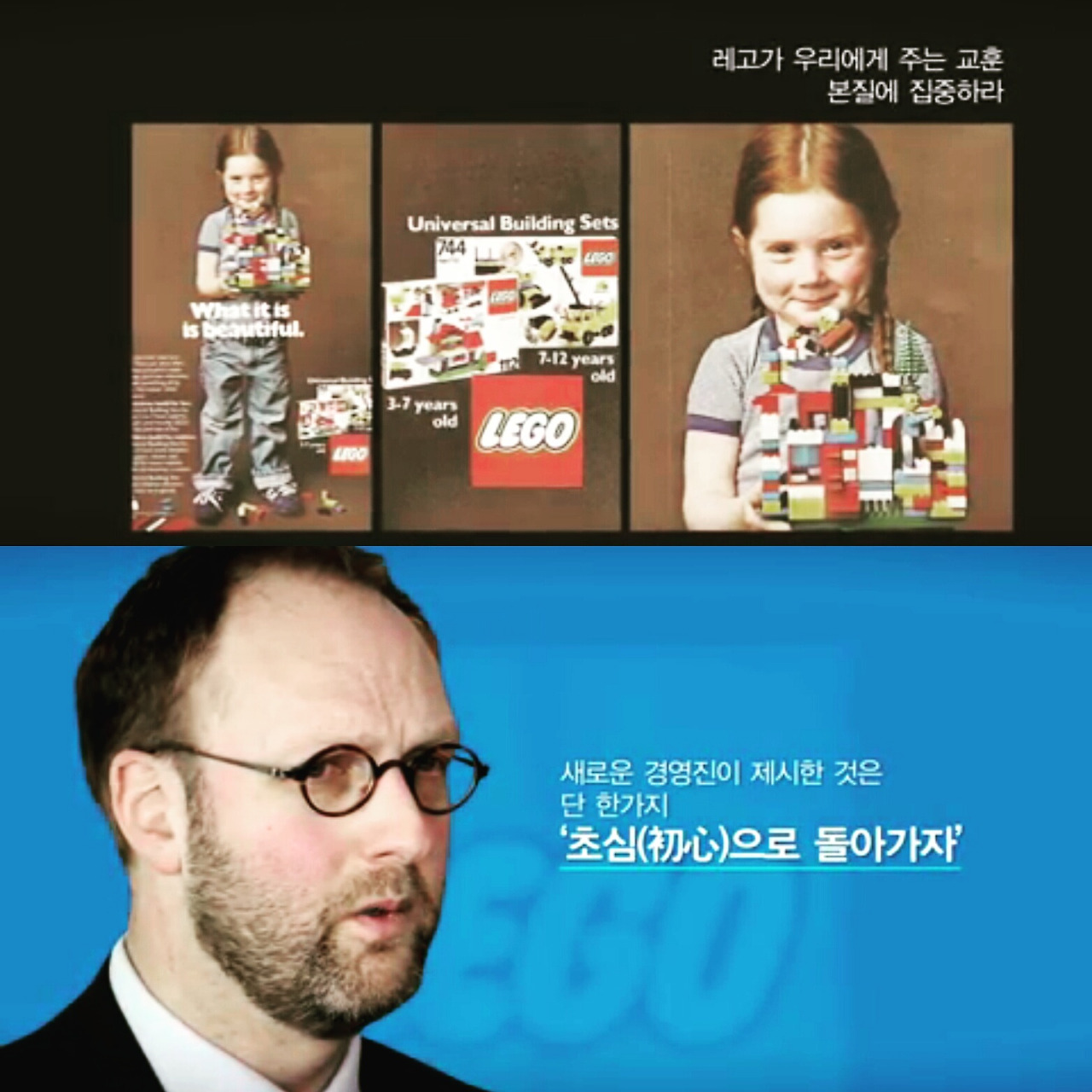 하지만 테마파크, 영화, 아동복 분야 등으로 무분별하게 확장한 결과 수익성은 악화되고 불어닥친 위기의 순간, 레고의 경영진은 창업 당시까지 역으로 되돌아보고 '혁신'의 개념을 바꿔 놓으며, 거창한 변화나 새로운 아이디어가 아니라 먼저 나를 알고 내가 잘할 수 있는 일로 최고의 성과를 올린 것이라 할 수 있죠.