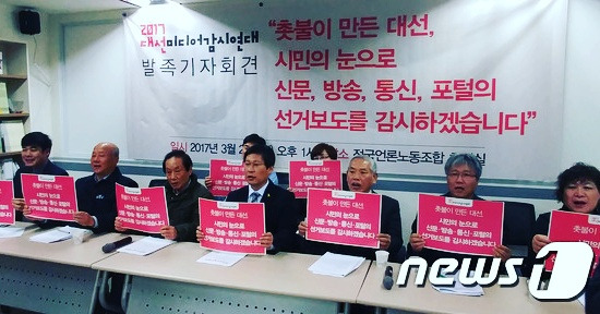 제 19대 대통령선거를 앞두고 전국언론노동조합, 민주언론시민연합 등 언론 분야의 시민·사회단체들이 대선 보도 모니터링 및 감시에 나섭니다. 이들은 지난 20일 오후 1시, 서울 중구 프레스센터에서 기자회견을 개최하고 '2017년 대선미디어감시연대'(이하 대선감시연대)를 발족했어요.