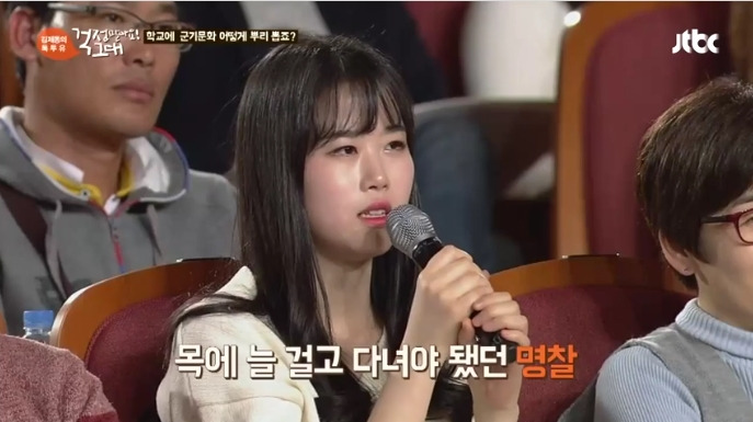 이어 미래의 스튜어디스가 될 대학 항공운항과의 충격적인 사연이 공개됐죠. "학교에서 엘리베이터를 이용하지 못하게 해서 계단으로 다니게 됐다"며 "관행으로 내려져 오는 학과의 전통이자 악습의 하나로, 관행과 전통이라는 이름 아래 잘못된 군기 문화를 이제는 뿌리째 뽑아야 되지 않을까"라는 한 청중의 사연이 소개됐어요.