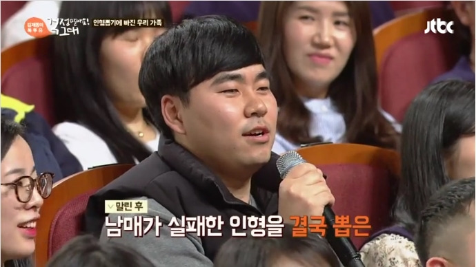 인형 뽑기 가게에서 에피소드를 소개한 한 청중은 "여자 친구를 기다리는 동안 남매가 뽑던 인형이 기계 입구에 딱 걸려버렸다. 1천 원이 부족해 인형 뽑기 기계를 흔들던 남매를 말리고, 대신 돈을 넣어 인형을 뽑고 줄행랑쳤다"며 "지금에서야 얘들아 미안해 헤어날 수 없었다"고 용서를 구했어요.