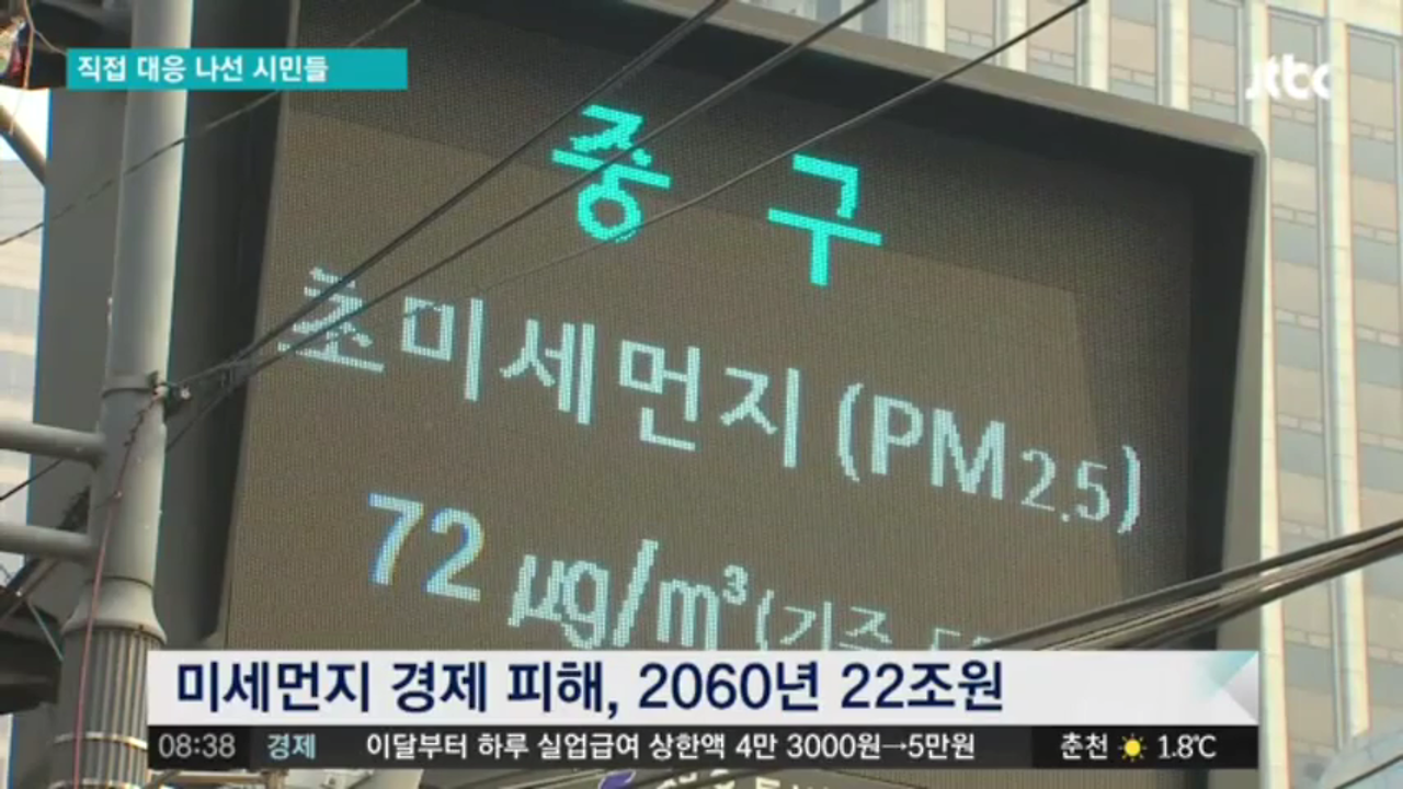 이른바 '에어포칼립스'라 불리며 초미세먼지 공포가 계속되고 있지만 정부의 대책은 아직 미온적이라는 평가인데요, 환경부는 이달 5일부터 서울·인천·경기 세 지역에서 초미세먼지 평균 농도가 이틀 연속 '나쁨' 수준이 되면, 수도권 내 공공 부문의 차량에 대해 2부제를 발령키로 했다고 해요. 하지만 2부제 대상은 수도권 전체의 3%에 불과해 실효성이 없다는 지적입니다.