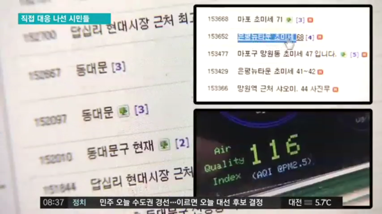 아이를 키우는 엄마들이나 시민들은 국내 예보는 참고로 하고 중국과 일본기관이 제공하는 국내 대기환경정보를 포털사이트의 육아카페나 최근 시민운동을 추진하는 미대촉 카페 등에 실시간으로 공유하기도 합니다.