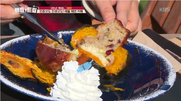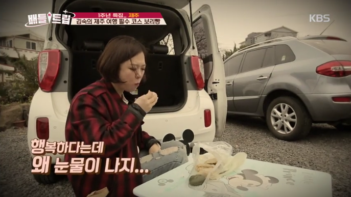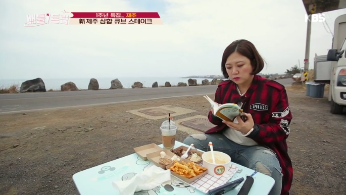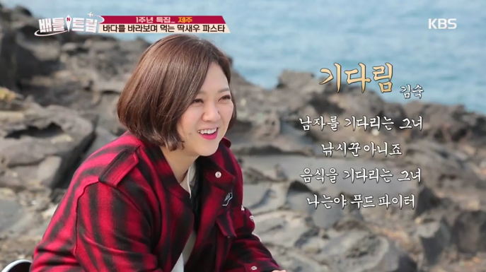 지난해 10월 tvN '곽승준의 쿨까당'에서 자신을 고깃집에서 혼자 고기를 구워 먹는 '프로 혼밥러' 8단계 수준이라고 밝힌 바 있는 김숙은 바닷가재를 떠올리는 맛이 일품인 딱새우 로제 크림파스타에 이어 프리미엄 레스토랑 분위기 가득한 양파, 버섯을 더한 삼합 큐브 스테이크를 파는 푸드트럭과 보리빵부터 시작해 아름다운 봄 바다를 풍경으로 호박 케이크 디저트 카페까지 식사량도 어마어마해 보여 푸드 파이터로서 명성을 과시하며, 수많은 인생사진을 전했어요.