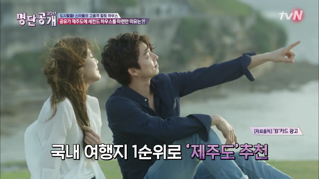 지난 5일 밤에 방송된 tvN 연예정보 프로그램 '명단공개 2017'에서는 '스타들의 고품격 힐링 하우스'가 공개됐는데요, 최근 JTBC 예능 '효리네 민박'으로 방송에 컴백한 '소길댁' 이효리나 '한끼줍쇼'에 게스트로 출연한 송윤아처럼 제주도에 터를 잡은 스타들이 늘고 있는 가운데, 톱스타 공유가 지난 2013년에 제주도에 세컨드 하우스를 마련했다고 소개했어요.