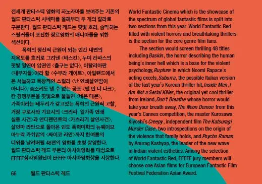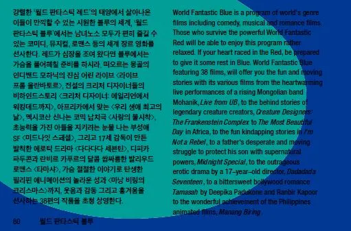 지난해 월드판타스틱시네마 섹션은 신체절단, 심령물 등 소재로 폭력성과 잔혹함이 더해 영화제 특성에 어울리는 레드와 일반인들을 고려한 블루로 대중성을 많이 배려한 것 같아요..저 역시 레드보단 판타스틱 블루 섹션의 재기발랄한 작품들에 눈길이 더 갔습니다.