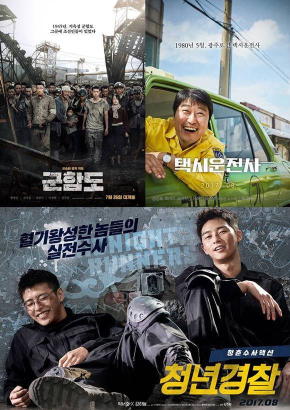 쇼박스는 제작비 150억 원을 투입한 장훈 감독의 영화 <택시운전사>를 지난주 가장 먼저 언론배급 시사회를 통해 공개하면서 오는 8월 2일에 개봉할 예정이고, CJ엔터테인먼트는 제작비 220억 원을 쏟아부은 류승완 감독의 <군함도>를 다음 주에 언론시사회를 통해 공개하며 <택시운전사>보다 한 주 앞서 26일에 개봉하면서 쌍천만 흥행을 거둘 수 있을지 주목된다.