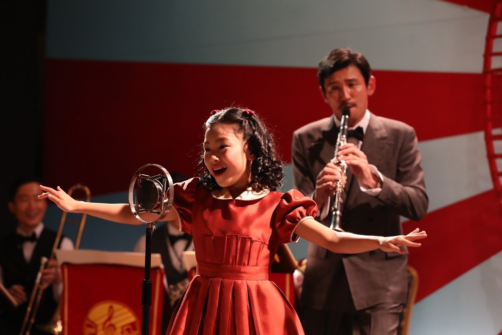 비극적인 굴욕의 역사를 소재로 한 영화 <군함도>에서 악단장 강옥 역 황정민의 외동딸 소희 역을 맡은 김수안은 순수한 소녀의 모습으로 황정민과 콤비를 이뤘죠. <국제시장>의 황정민을 떠올리는 부녀 케미를 자랑하며 자칫 어두울 수 있는 영화의 정서를 경쾌하고 밝게 환기하는 역할을 합니다.