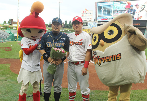 이호준은 2000년부터 SK 와이번스에서 뛰면서 세 차례의 한국시리즈 우승을 일궈냈고, 경기 전 SK 시절 영상이 전광판에 깜짝 상영되자 그는 눈시울을 붉혔다고 해요.