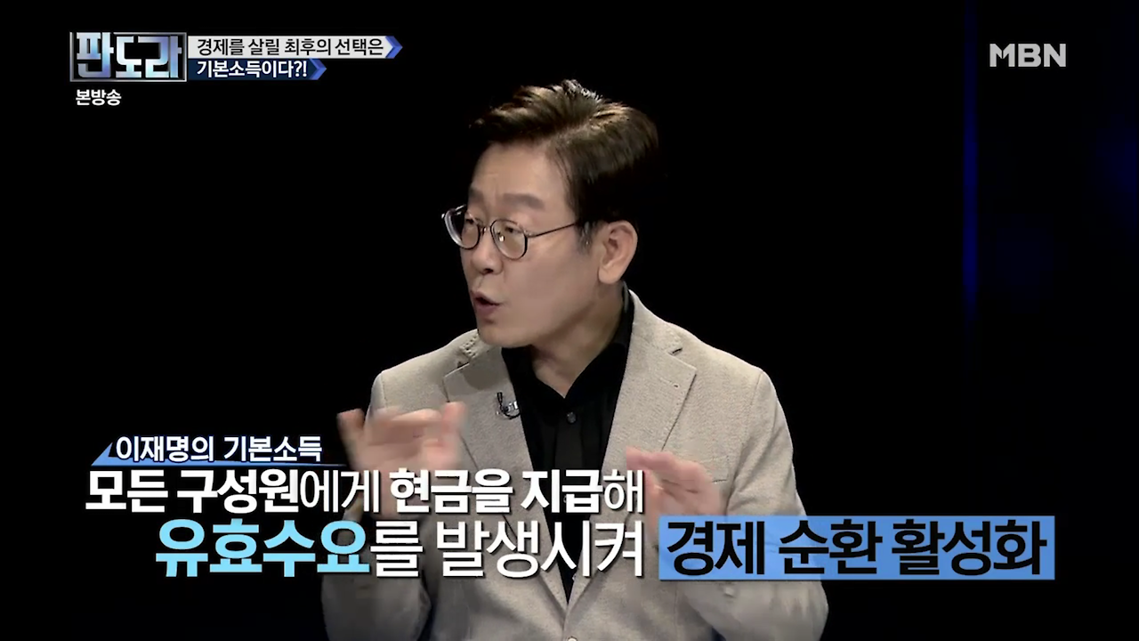 이재명 시장은 지난 25일 MBN 시사토크 예능 프로그램 <판도라>에 출연해 기본소득제 도입의 필요성을 설명하고 성남시가 추진 중인 청년배당 정책과 기본소득 효과의 사례를 소개하며 "우리나라의 경우 월 30~ 50만원 수준의 기본소득으로 단계적으로 시행하게 되면 전 국민이 소득이 적은데 의미있고 하고 싶은 일을 하며 살 수 있다"고 설명했어요.
