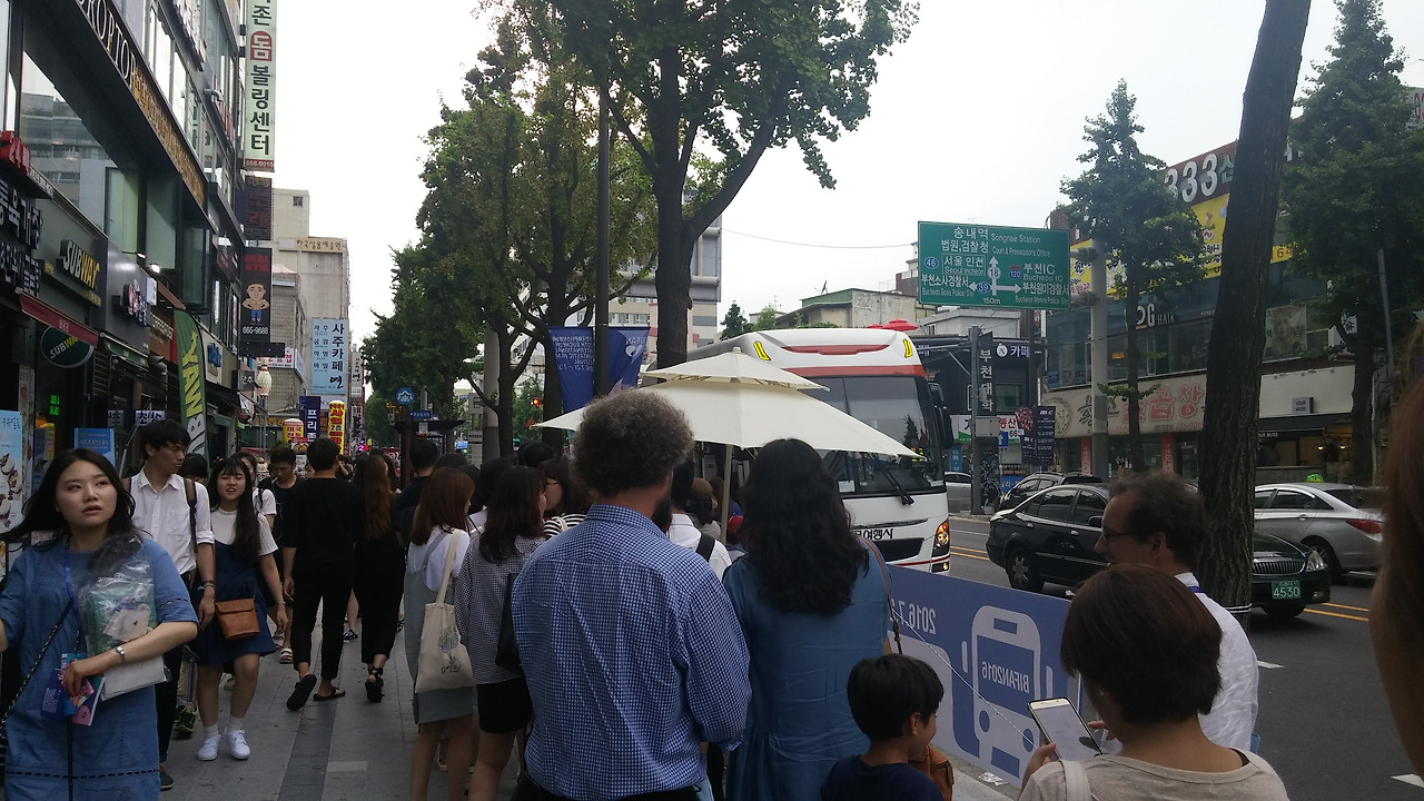 부천시청에서 프레스뱃지 발권을 위해 서 있는데, 뒤에 기다리고 있는 방문객에 대한 배려없이 아랑곳 않고 외국인 게스트와 농담, 사진 촬영 등을 선뜻해주는 자원봉사자의 모습에 실망감을 감출 수 없었다.