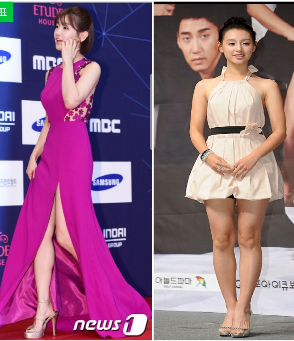 공식 행사 이브닝드레스와 초미니 원피스 미모 대결