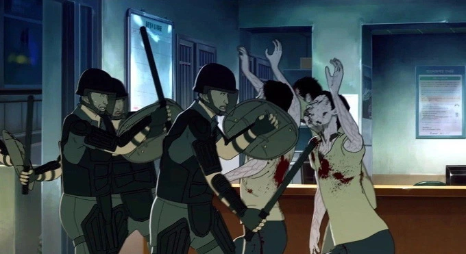 영화 <서울역>은 <부산행>의 이야기 이전의 지옥도 같은 하루가 지난 후 여명이 밝아오는 아침에 검붉은 화염으로 타오르는 도심의 미장셴으로 막을 내리는데, 실사 영화보다 훨씬 더 리얼리티 있게 한국 사회의 민낯을 고발한다.