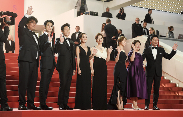 영화 '기생충'의 배우 송강호, 박소담, 봉준호 감독, 이정은, 최우식, 이선균(사진 왼쪽부터)