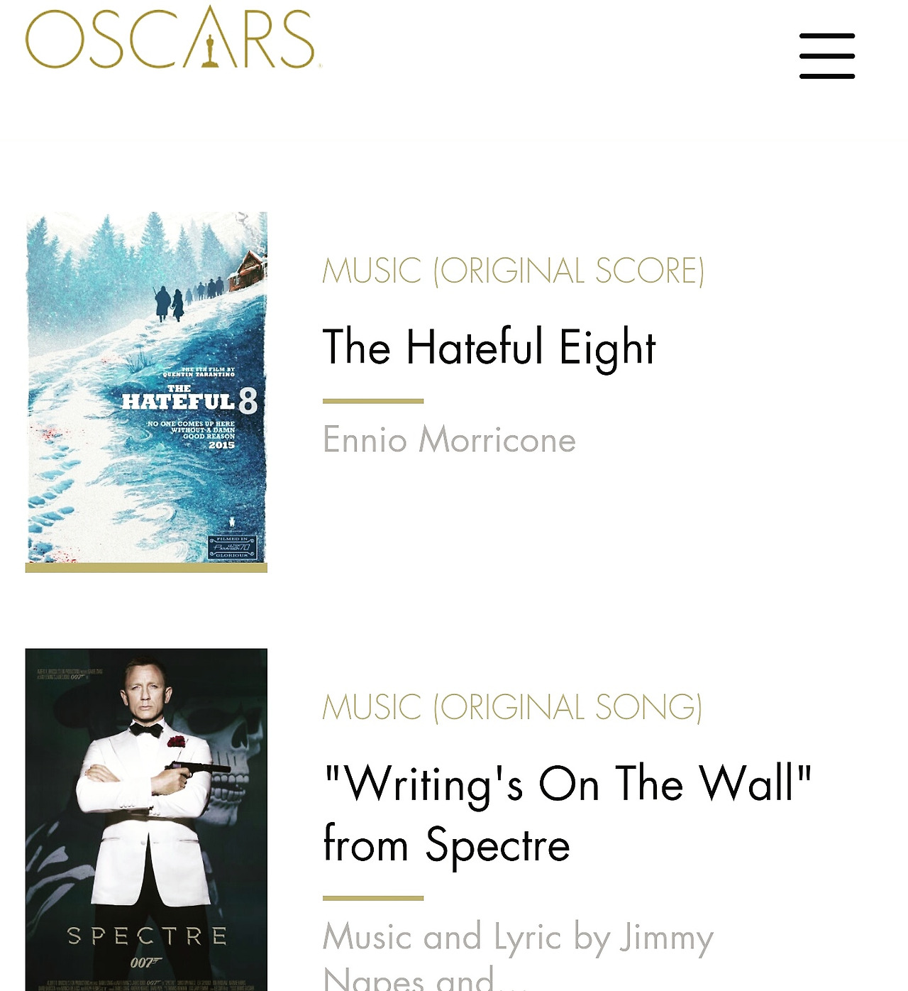 ▲음악상 - 헤이트풀8(엔니오 모리꼬네)