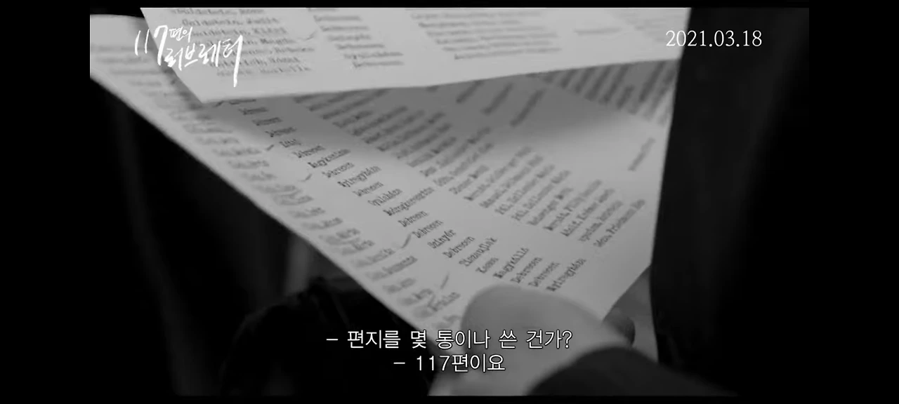 절망 끝에서 기적을 이뤄낸 연인의 사랑을 색다른 감성으로 그려낸 제3세계 영화 <117편의 러브레터>였습니다.