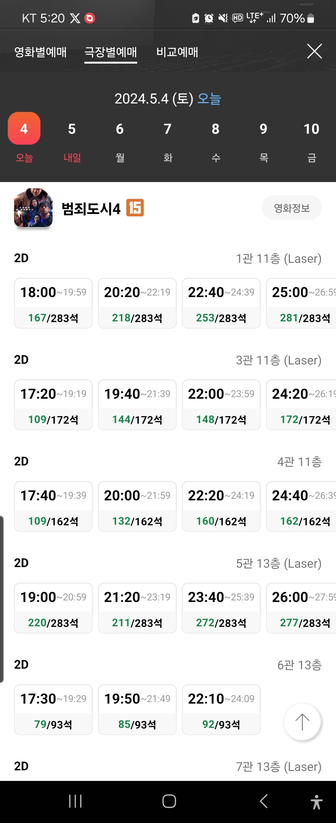 지난 4일 서울 시내 한 영화관의 '범죄도시4' 잔여 상영회차