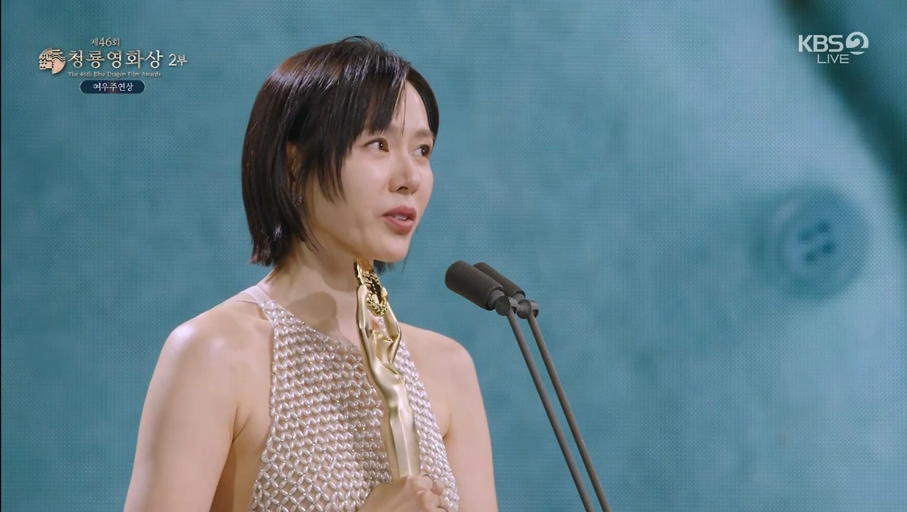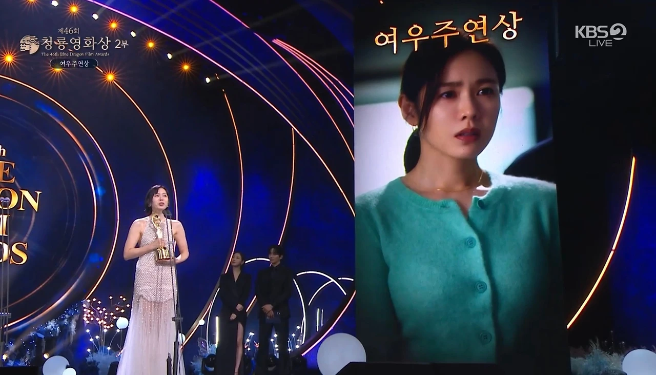 “27살 때 처음 청룡영화상에서 여우주연상을 받으면서 ‘여배우로 살아가는 게 쉽지 않다’고 말했는데, 그때 받은 상이 힘이 됐었다"라며 "마흔이 넘어 다시 이 상을 받게 되어 너무 감사하다. 연기를 시작했던 그 첫 꿈이 청룡에서 여우주연상을 받는 것이었는데 다시 이 꿈을 이루게 해 줘서 감사하다"라고 전했습니다.
