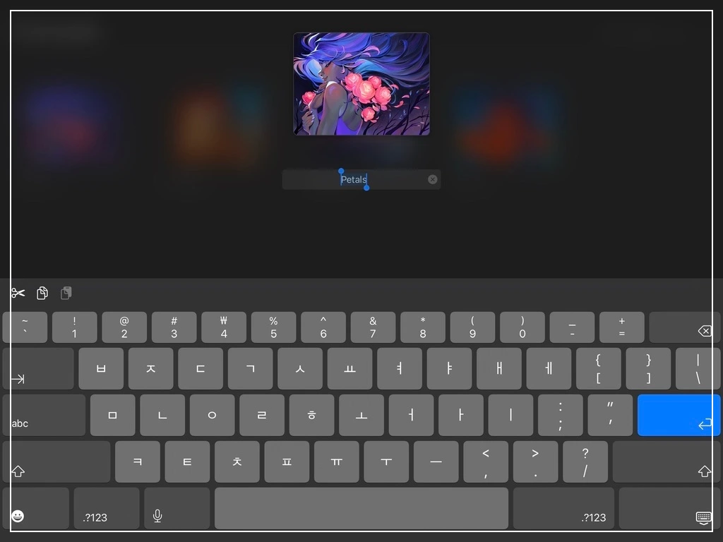 캔버스 이름 위를 탭 하면, 이름을 바꿀 수 있도록 키패드가 등장합니다.
