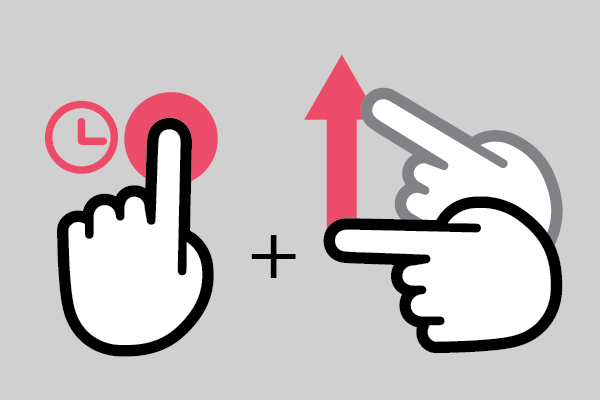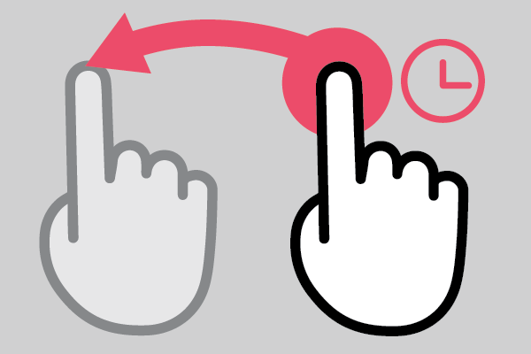 탭과 달리 손가락으로 길게 지그시 누르고 있는 제스처로 손가락을 바로 떼지 않고, 의도한 동작이 실행될 때까지 손가락을 댄 채 유지해야 합니다.