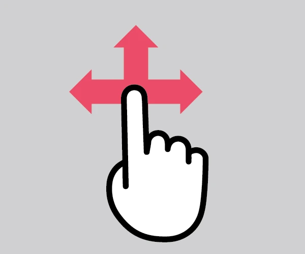 화면에 손을 댄 채로, 방향과 시간에 제한 없이 움직이는 제스처입니다. 화면이나 객체를 움직일 때 사용하는 제스처로, 팬 동작은 손가락을 화면에서 땔 때까지 인식됩니다.