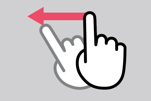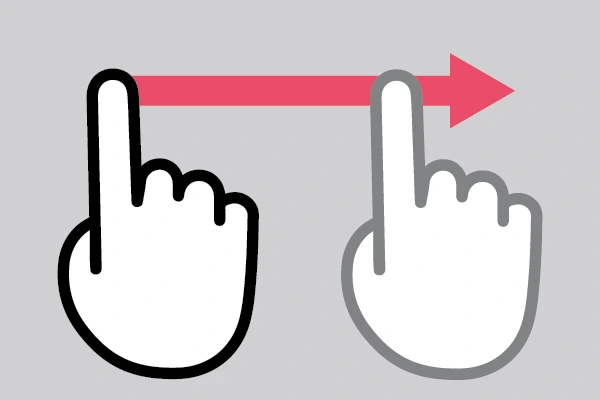 손가락을 화면에 댄 상태에서 수직이나 수평 직선 방향으로 밀어내는 제스처입니다. 손가락을 짧게 밀고 떼는 플릭과 다르게 손가락을 떼지 않고, 동작이 수행이 완료될 때까지 일정 거리 이상을 계속 밀어낸 후에 손가락을 뗍니다. 화면 스크롤을 내리거나 전환할 때 사용합니다.
